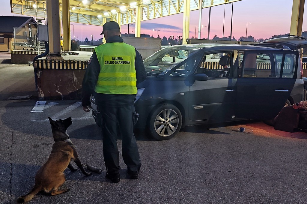 Funkcjonariusze Służby Celno-Skarbowej z Budziska zatrzymali do kontroli osobowe auto z lawetą na litewskich numerach rejestracyjnych. Samochód został prześwietlony i dokładnie sprawdzony. W przerobionej, podwójnej podłodze renault oraz w skrytkach w lawecie mundurowi wspierani przez służbowego psa Herę wykryli 9,5 tys. paczek białoruskich papierosów.