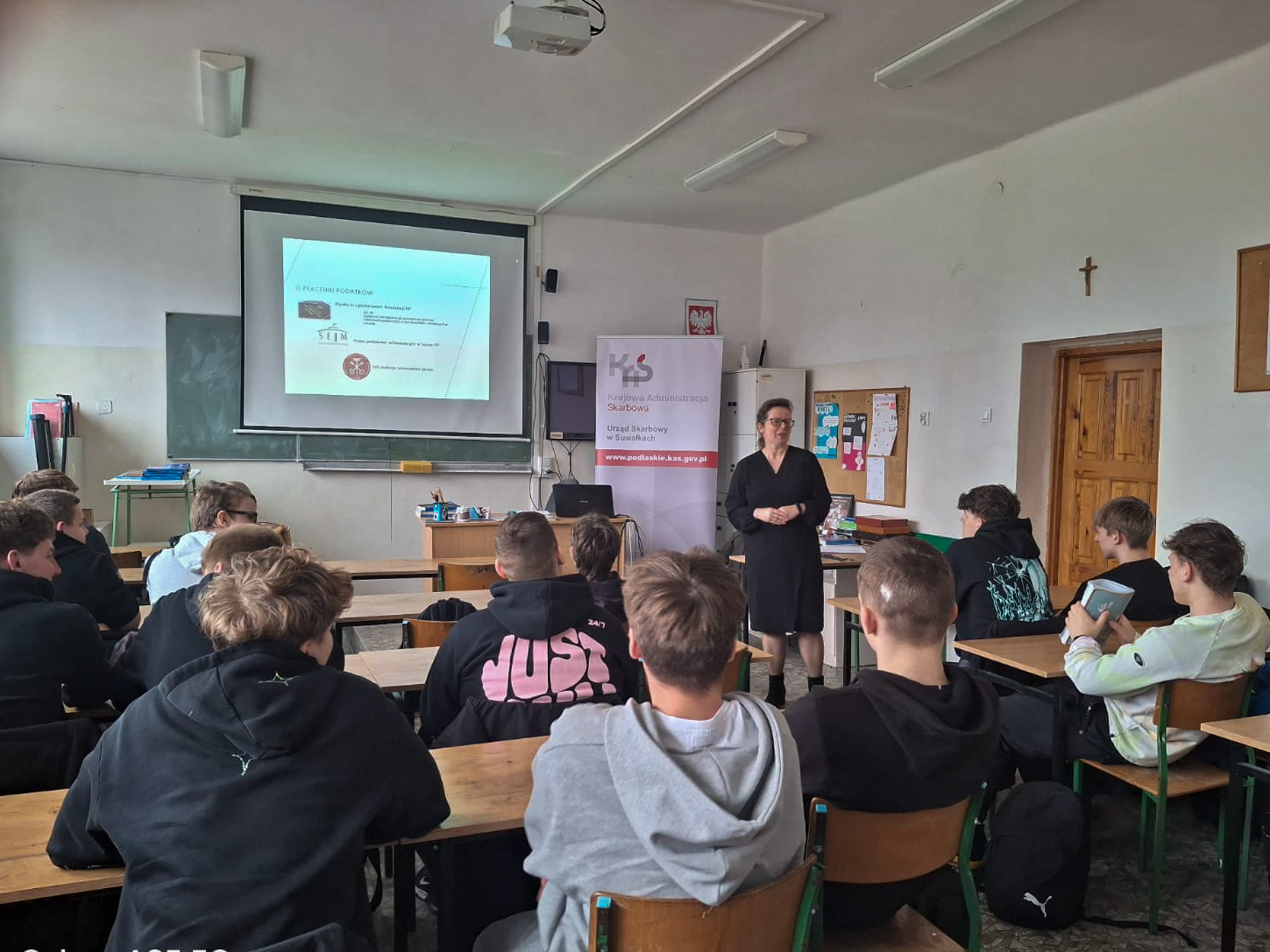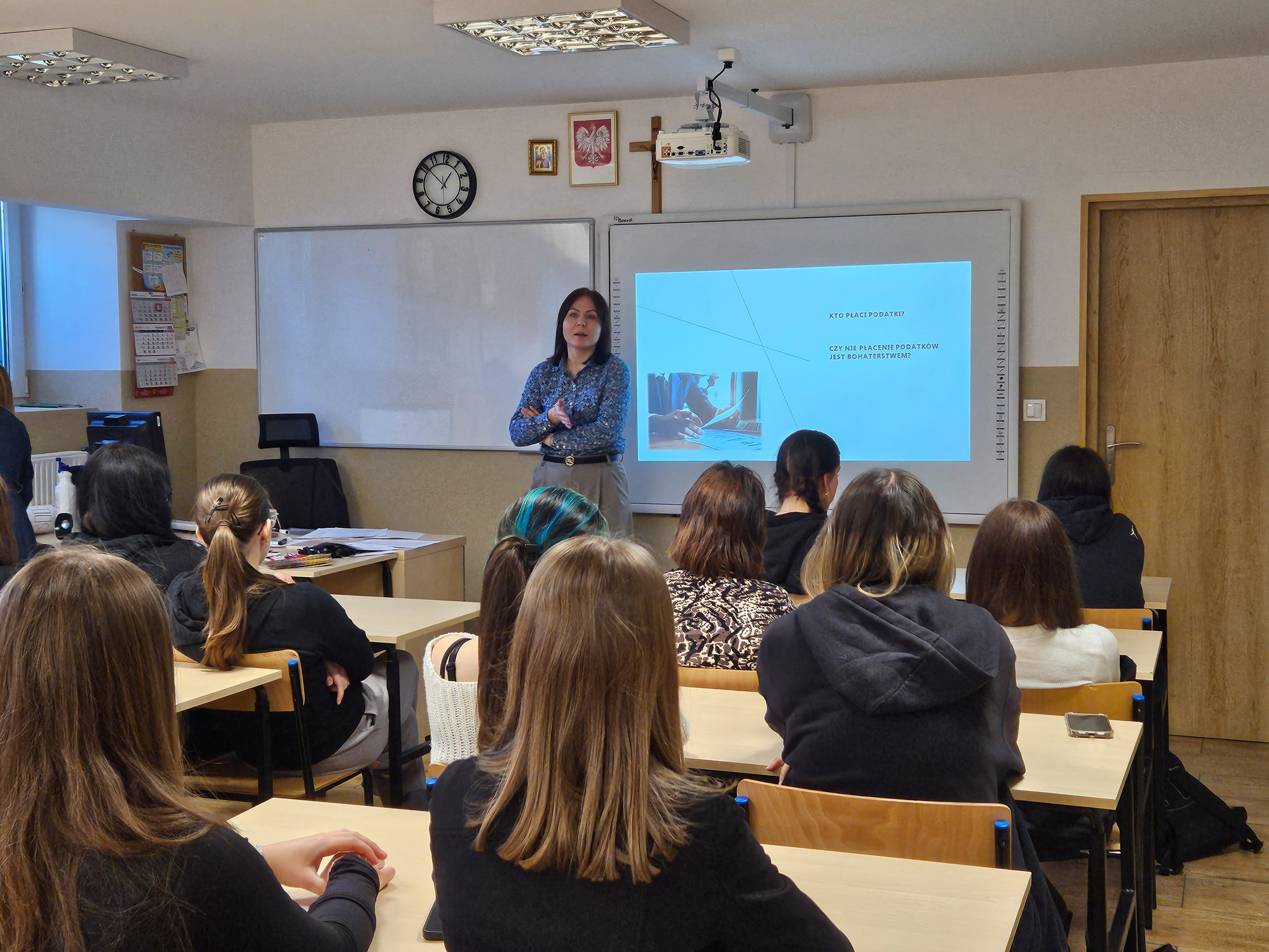 Dziękujemy wszystkim dyrektorom oraz nauczycielom szkół ponadpodstawowych za zaproszenia i możliwość przeprowadzenia spotkań z młodzieżą. Przede wszystkim dziękujemy jednak uczniom za ich liczną obecność, ogromne zainteresowanie tematami podatkowymi i aktywność na lekcjach.
