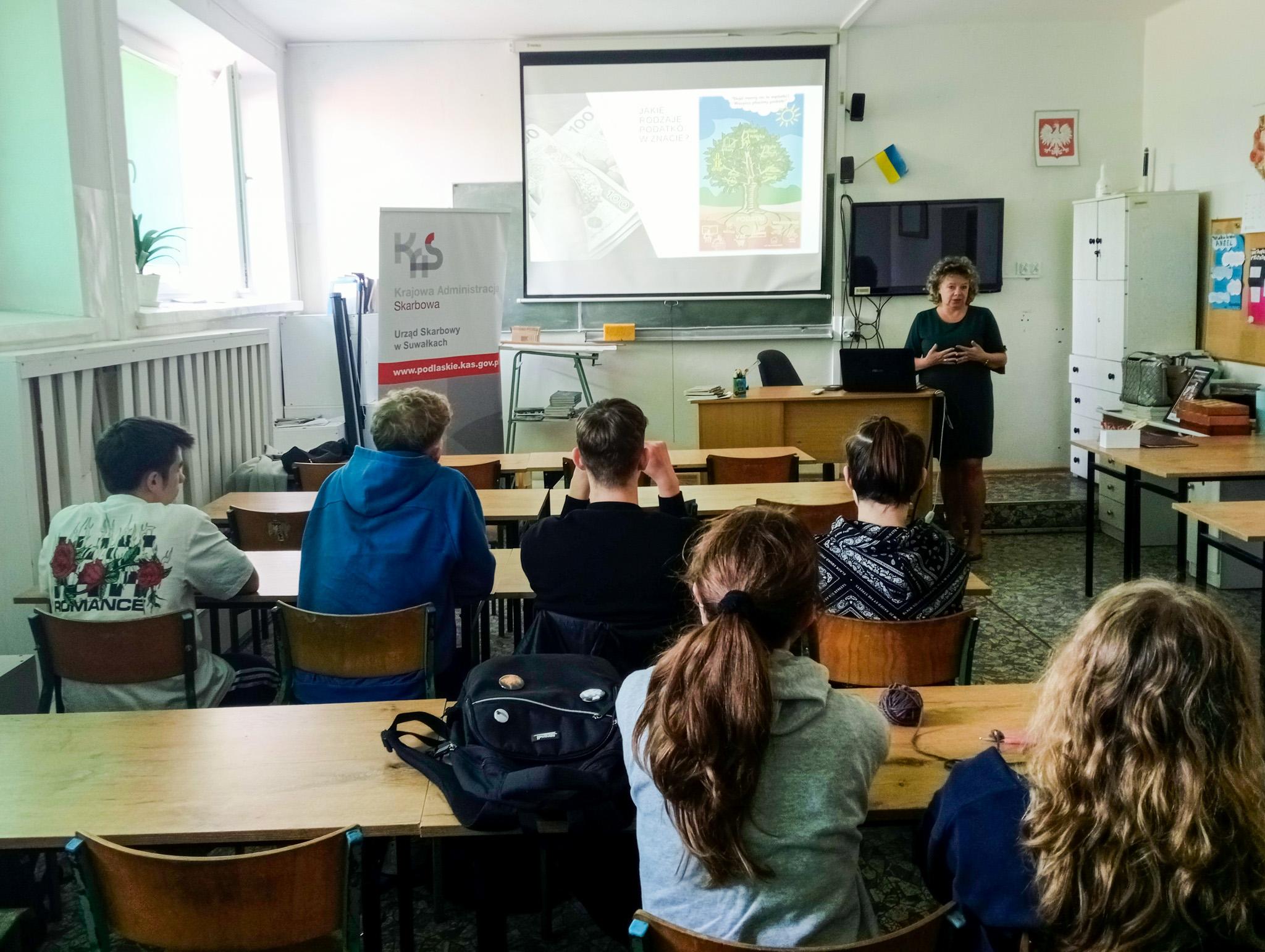 Spotkania w ramach „Akademii podatkowej podlaskiej KAS" w suwalskich szkołach będą kontynuowane już w czerwcu a kolejne szkoły zainteresowane przeprowadzeniem lekcji w ramach akademii serdecznie zapraszamy do kontaktu z podlaską KAS na adres e-mail: rzecznik.ias.bialystok@mf.gov.pl.