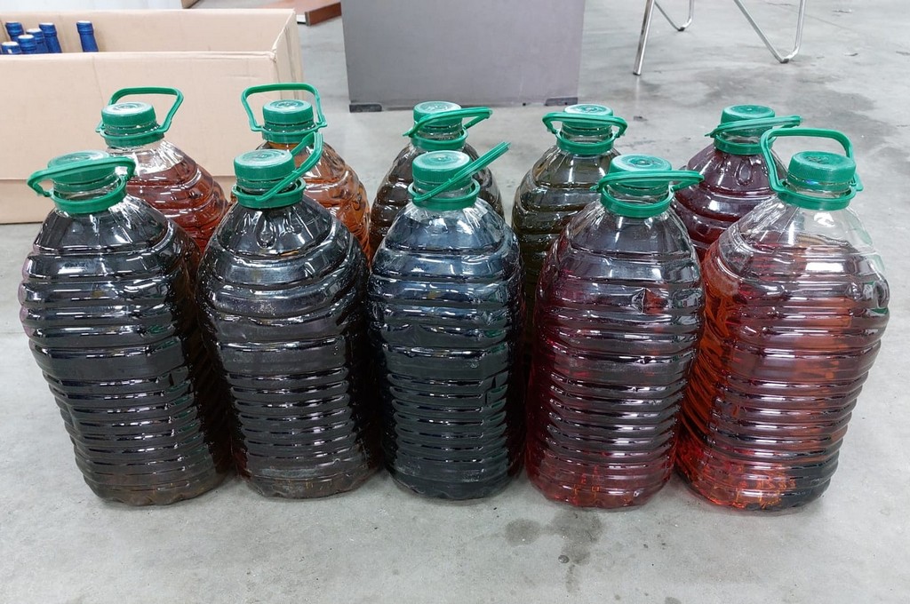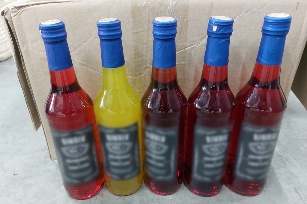 W pomieszczeniach znajdowały się także produkty do zabarwiania wyrobu gotowego, etykiety, zakrętki oraz butelki przygotowane do konfekcjonowania wyprodukowanego alkoholu.