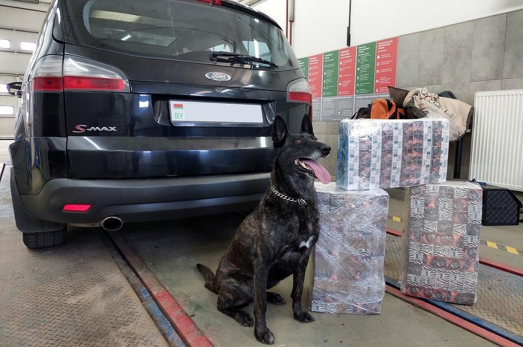 W rewizji samochodu uczestniczyła Chica, owczarek holenderski wyszkolony do wykrywania wyrobów tytoniowych. We wskazanych przez psa elementach nadkoli, kokpitu, a nawet w specjalnie przerobionych tłumikach auta, funkcjonariusze z podlaskiej KAS znaleźli 1223 paczki białoruskich papierosów. Szacunkowa wartość rynkowa zabezpieczonej kontrabandy to niemal 20 tys. zł.