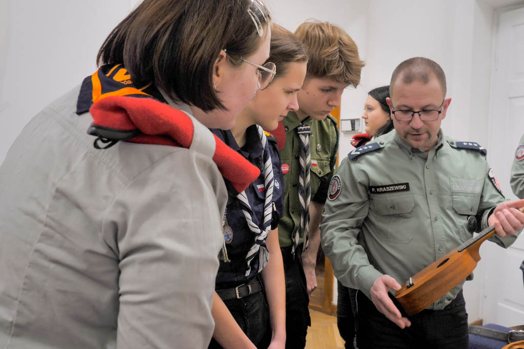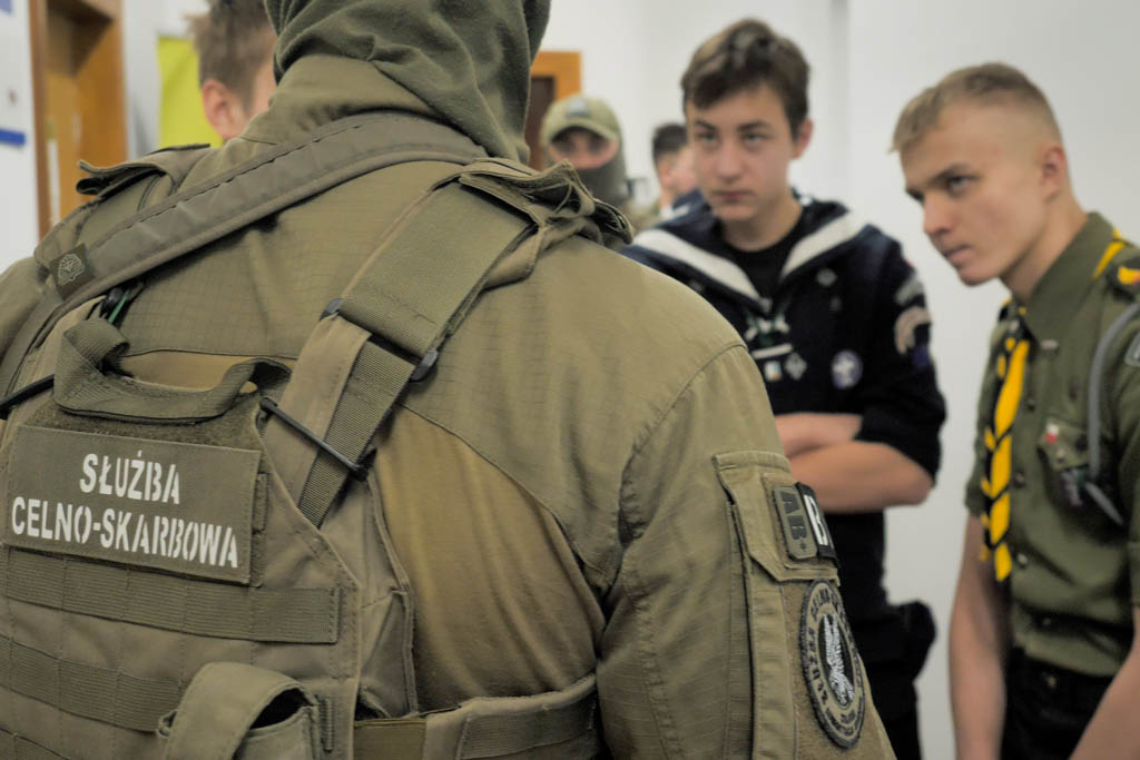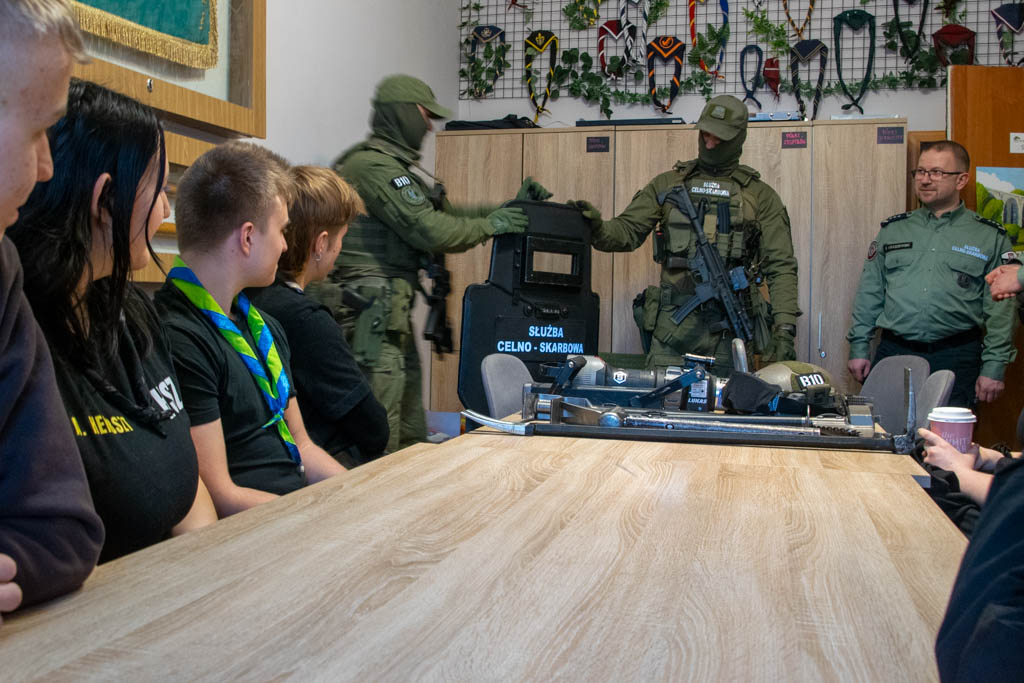 Młodzież dowiedziała się m.in. o szkodliwość obrotu podrobionymi towarami i ich negatywnym wpływie na uczciwą konkurencję. Harcerze poznali także wybrane okazy CITES i dowiedzieli się jakie zagrożenia dla przyrody niesie nielegalny handel chronionymi gatunkami fauny i flory. Prawdziwe emocje wzbudzili funkcjonariusze Grupy Zabezpieczenia Działań z Podlaskiego Urzędu Celno-Skarbowego, którzy opowiedzieli o swoich zadaniach i zaprezentowali profesjonalny sprzęt, używany podczas akcji.