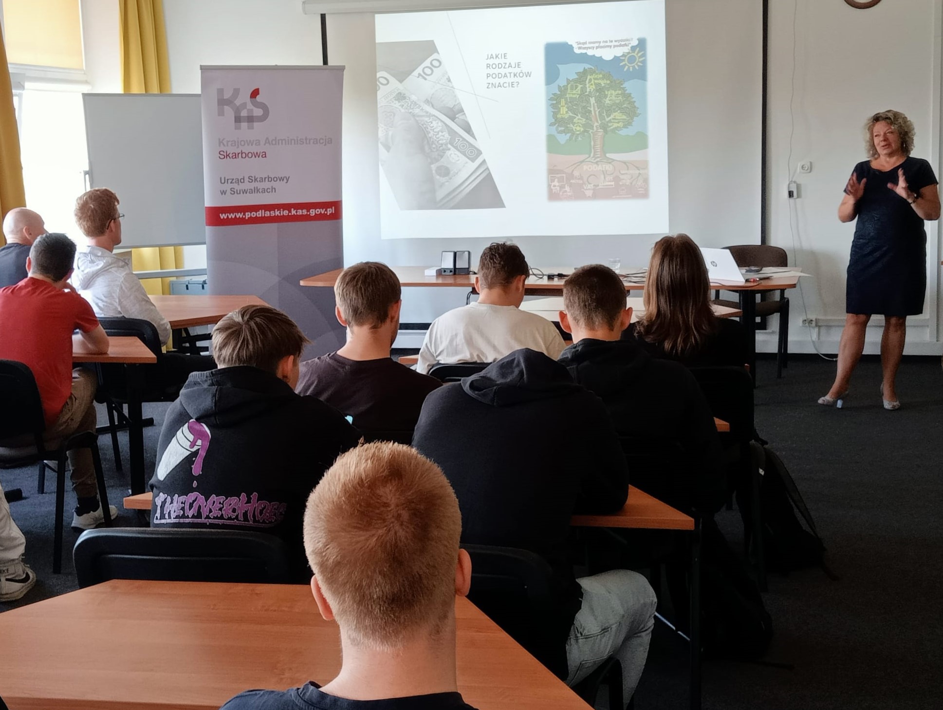- W rozpoczętym niedawno roku szkolnym spotkaliśmy się już z 23 klasami w pięciu szkołach ponadpodstawowych woj. podlaskiego, gdzie rozmawialiśmy o podatkach, budżecie i roli KAS we współczesnym państwie.
