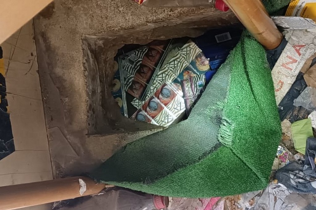 Funkcjonariusze Służby Celno-Skarbowej z Białegostoku podczas kontroli jednego ze stoisk z odzieżą na targowisku w Łomży znaleźli 560 paczek papierosów pochodzących z przemytu. Kontrabanda była ukryta pod ladą z towarem, w wydrążonej w betonie dziurze, dodatkowo zamaskowanej wykładziną.