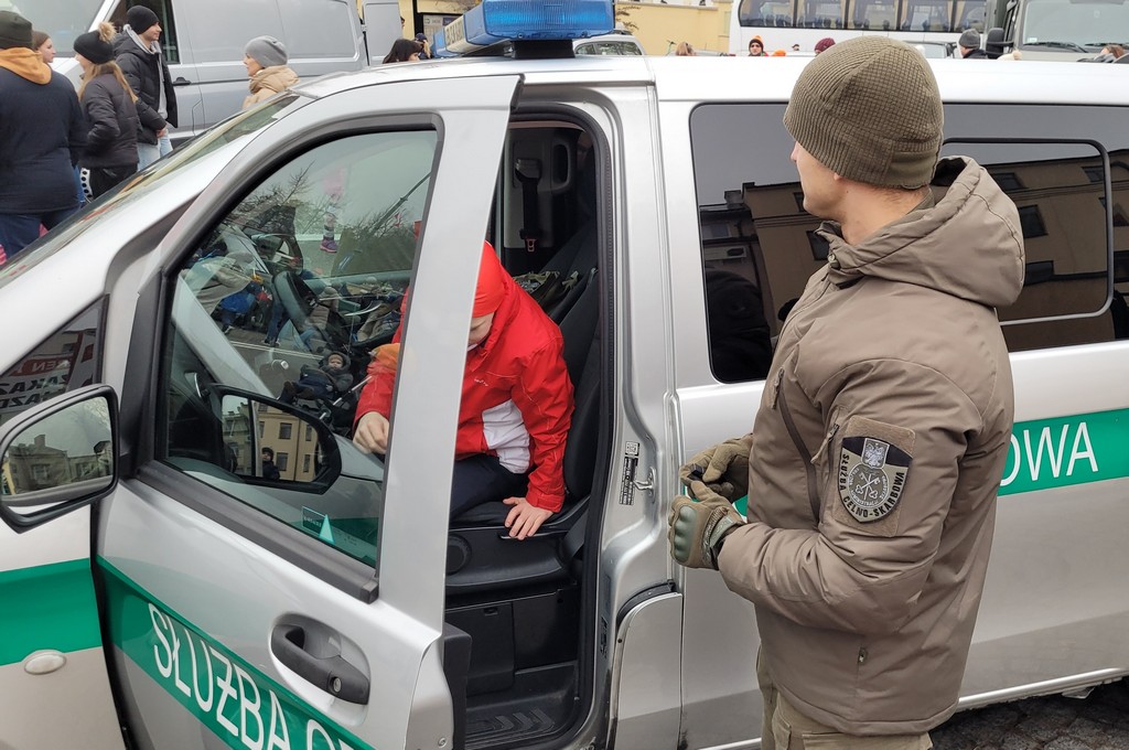 Odwiedzający mogli zobaczyć m.in. mobilny skaner podlaskiej KAS, radiowóz oraz wyposażenie funkcjonariuszy z Grupy Zabezpieczenia Działań Podlaskiego Urzędu Celno-Skarbowego w Białymstoku.