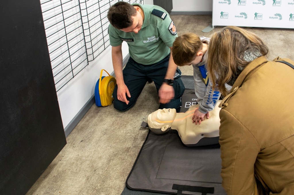 Także na odwiedzających Muzeum Wojska w Białymstoku czekała miła niespodzianka przygotowana przez podlaską KAS. W ramach zajęć zorganizowanych pod hasłem „Bezpieczeństwo jako współczesny patriotyzm” dzieci i dorośli mogli wziąć udział w praktycznych ćwiczeniach z pierwszej pomocy przedmedycznej poprowadzonych przez funkcjonariuszy Służby Celno-Skarbowej.