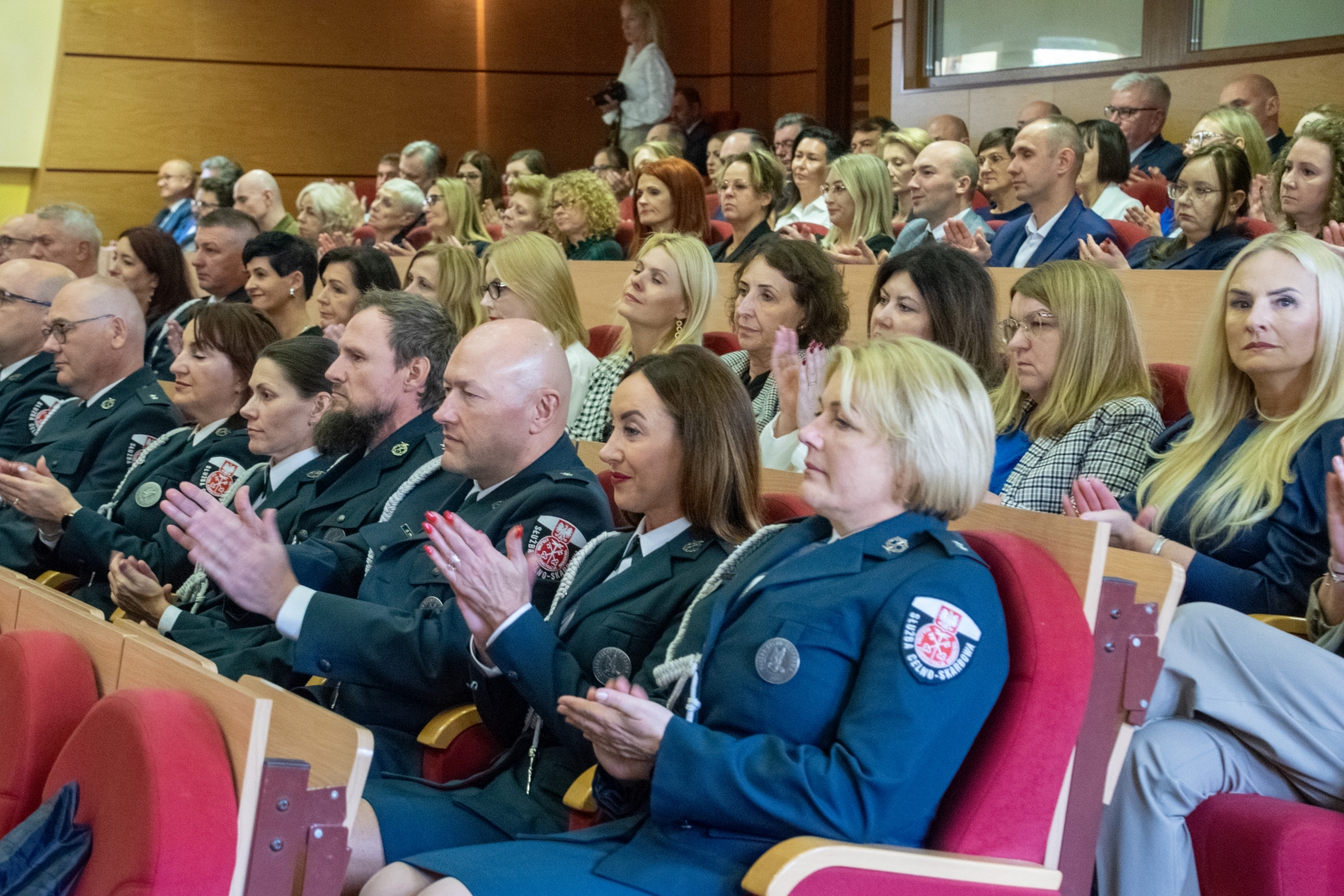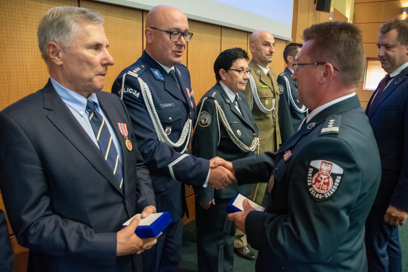 Uroczystość wręczenia odznaczeń prezydenckich i resortowych oraz mianowań na pierwszy stopień oficerski w Służbie Celno-Skarbowej odbyła się w auli Podlaskiego Urzędu Wojewódzkiego w Białymstoku.