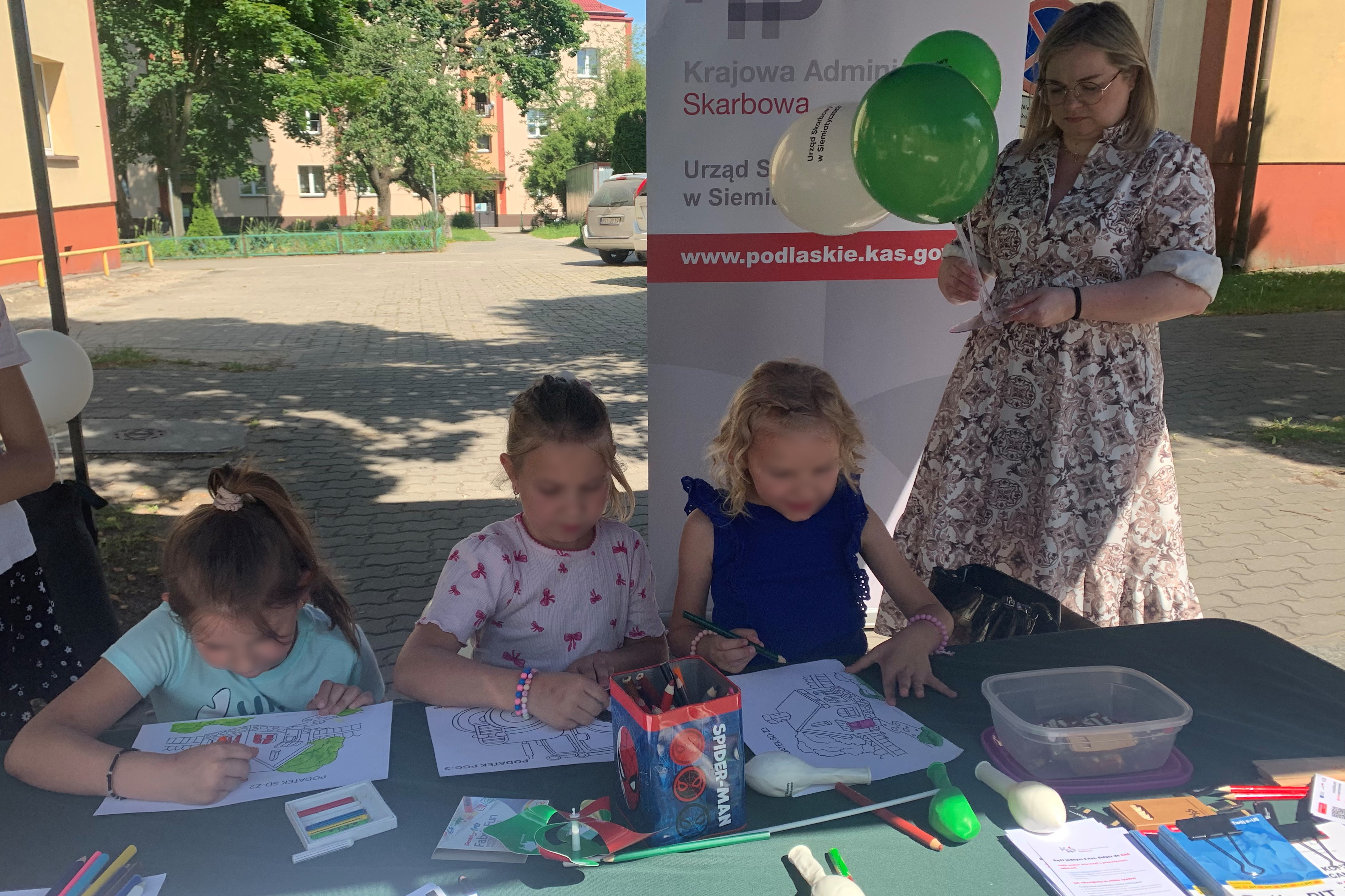 Szczególnym zainteresowaniem, zwłaszcza wśród najmłodszych mieszkańców, cieszyły się nasze tematyczne kolorowanki związane z podatkami. Dzieci miały okazję, w przystępny i zabawny sposób, zapoznać się z podstawowymi pojęciami, takimi jak podatek od czynności cywilnoprawnych (PCC) czy podatek od spadków i darowizn (SD). To doskonały sposób na edukację finansową od najmłodszych lat!