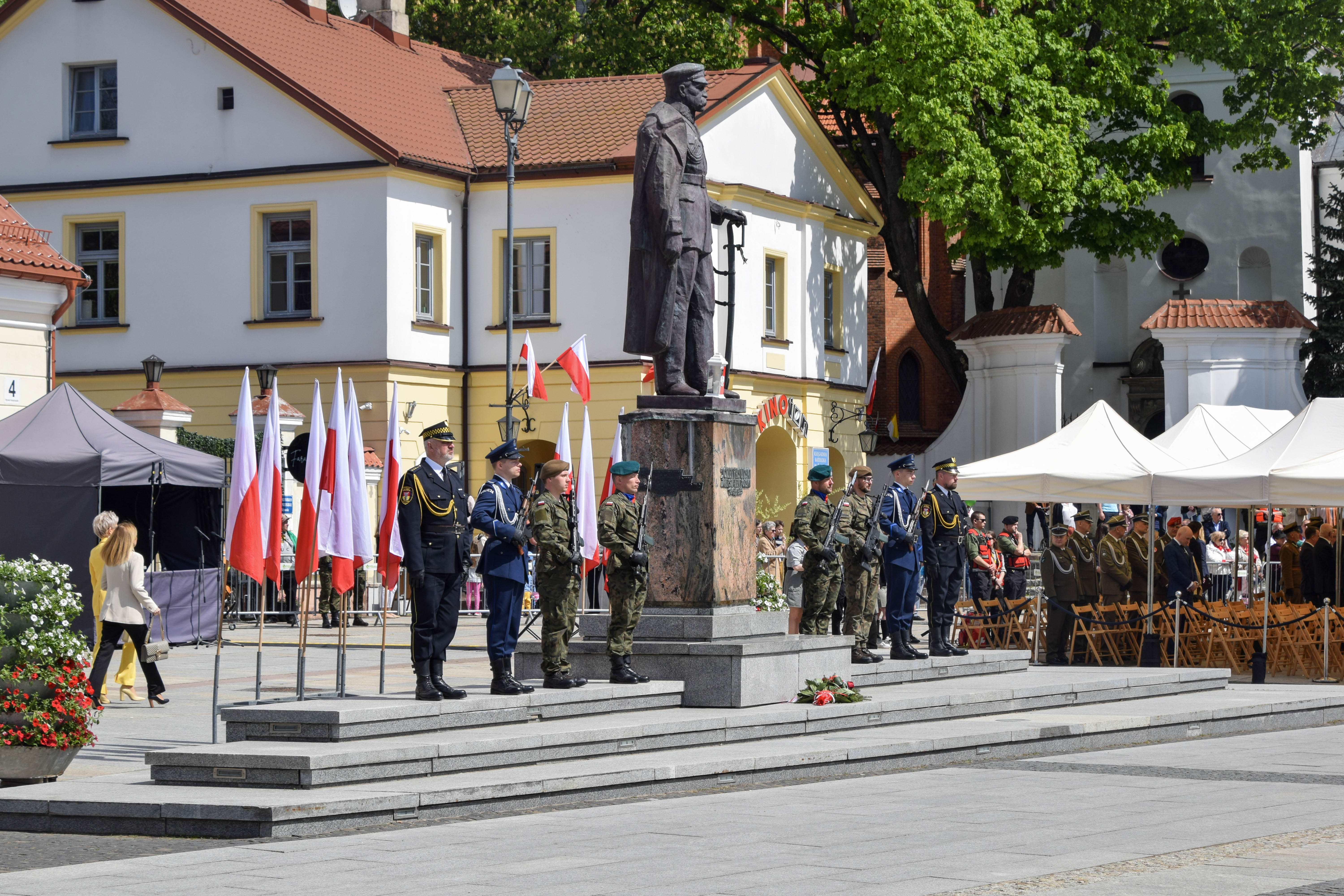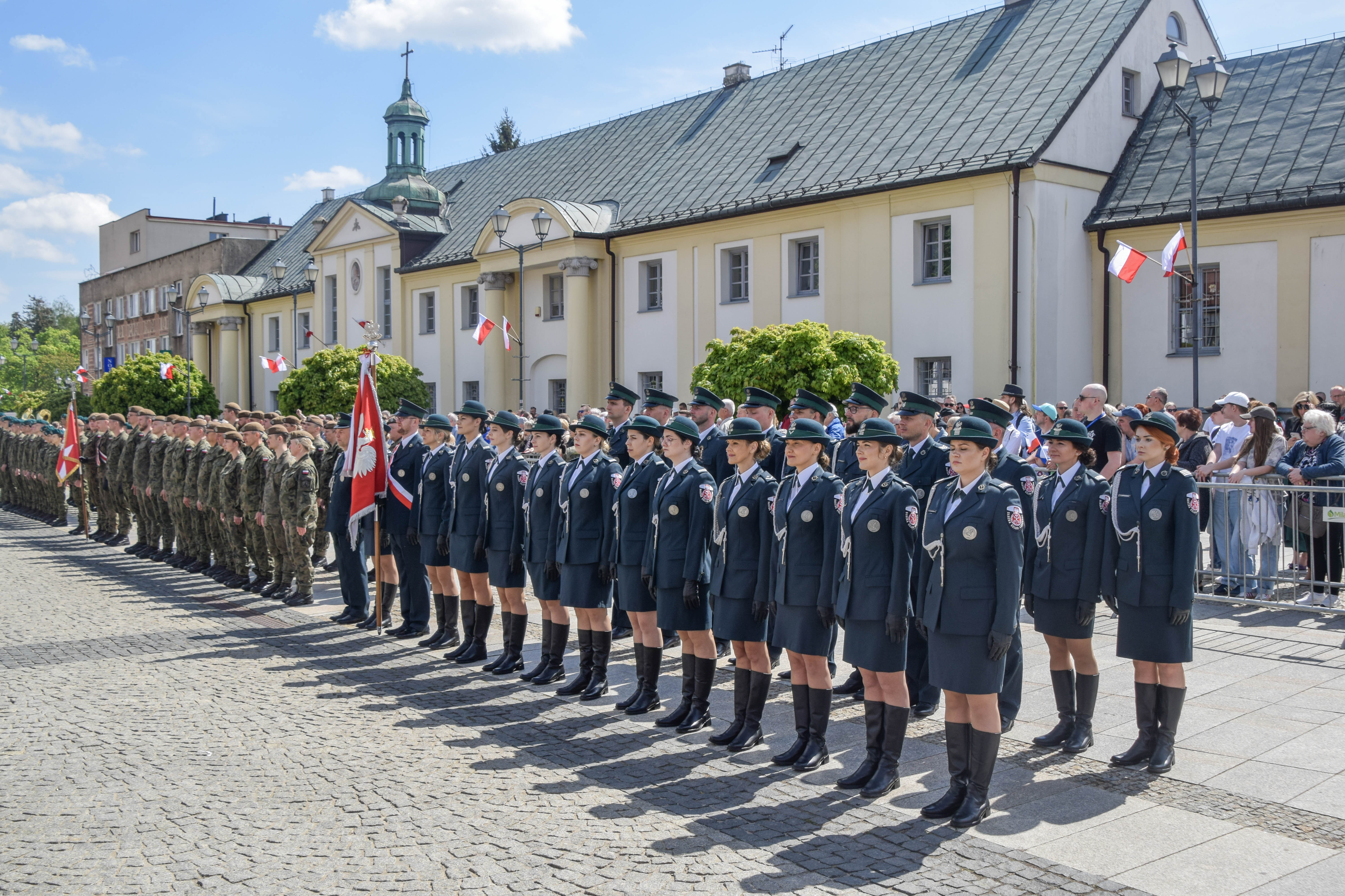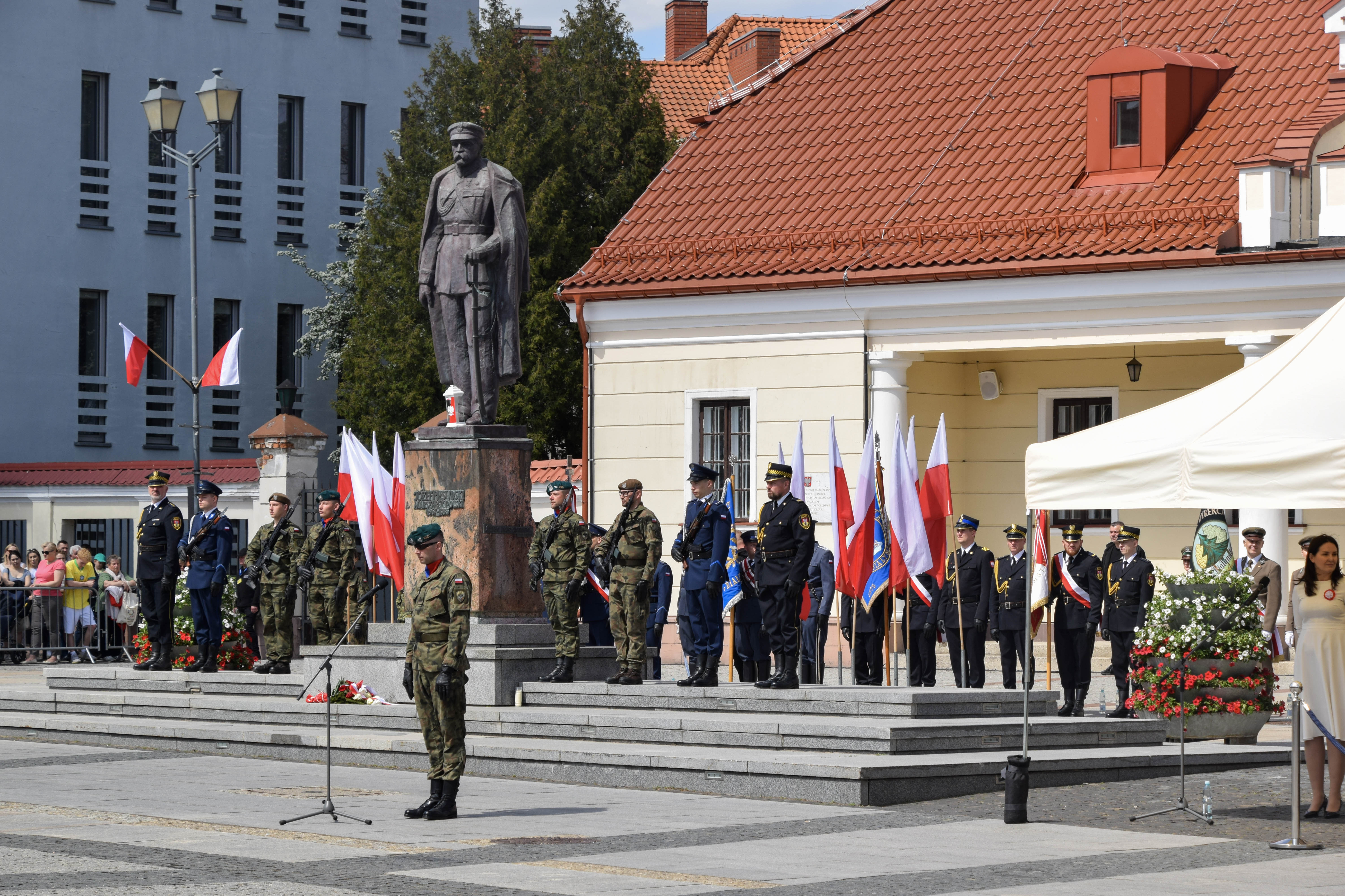 Pod pomnikiem Marszałka Józefa Piłsudskiego na białostockim Rynku Kościuszki, podczas uroczystości Narodowego Święta Trzeciego Maja reprezentował nas także poczet sztandarowy oraz Kompania Honorowa Podlaskiej KAS.