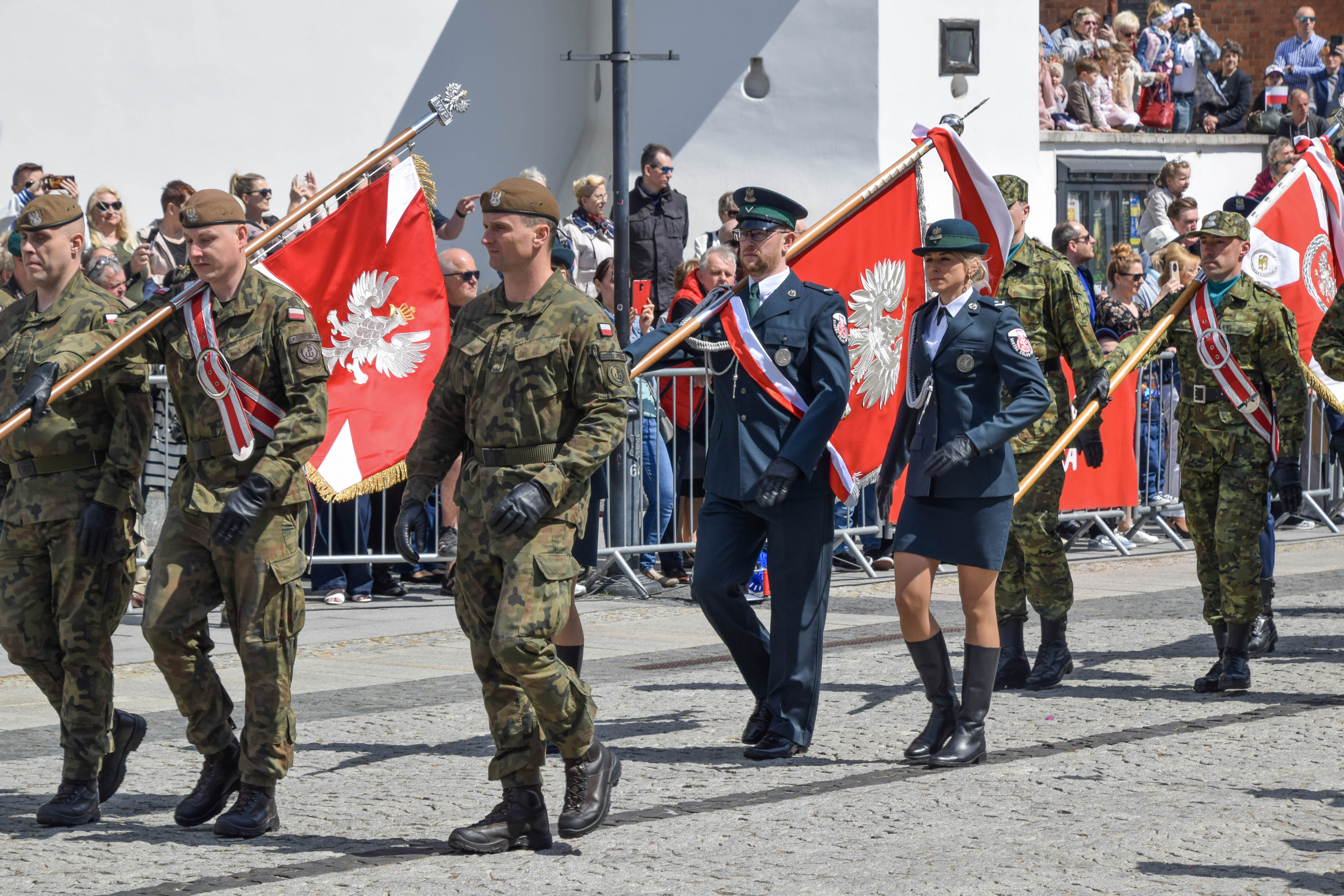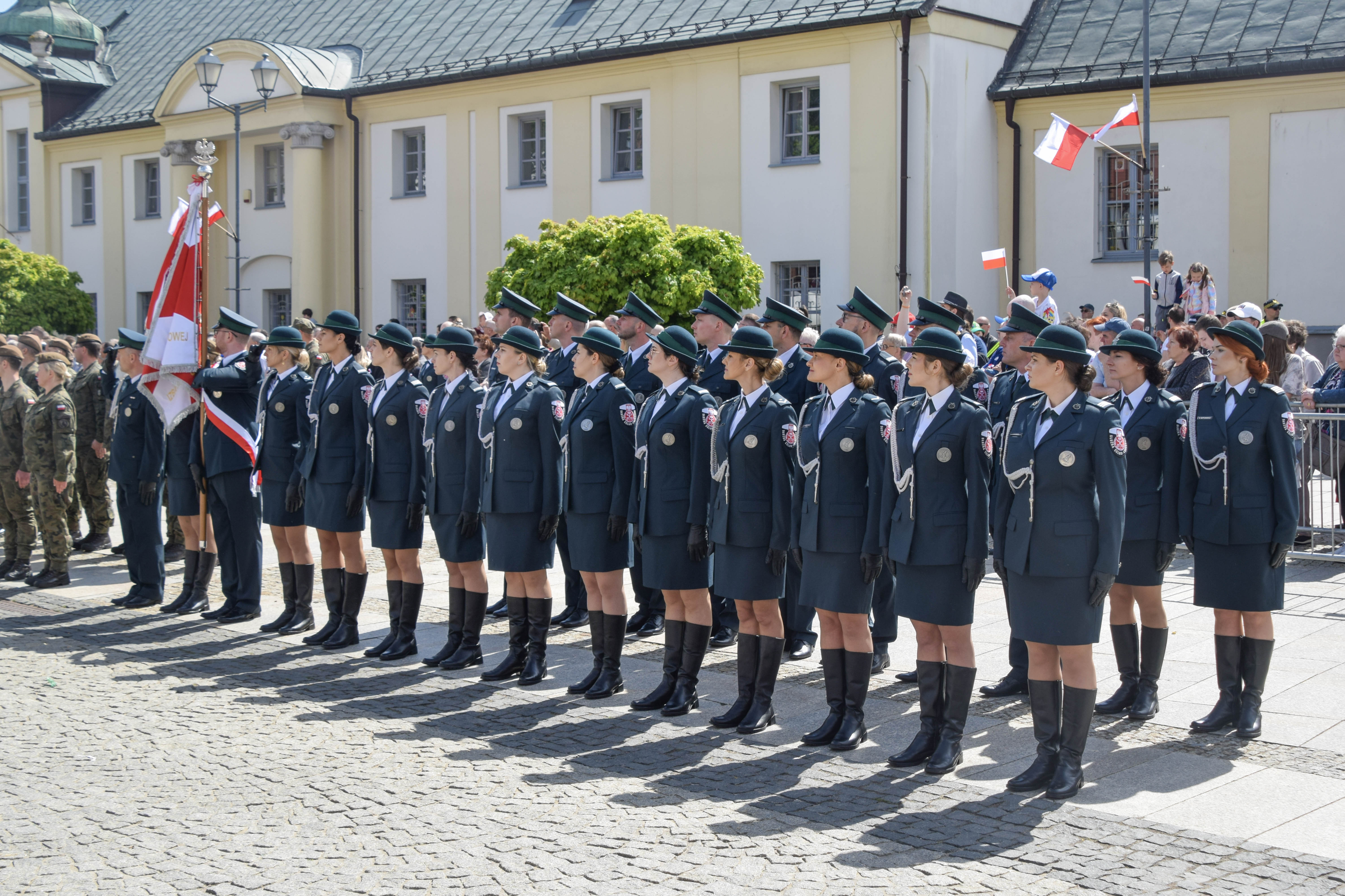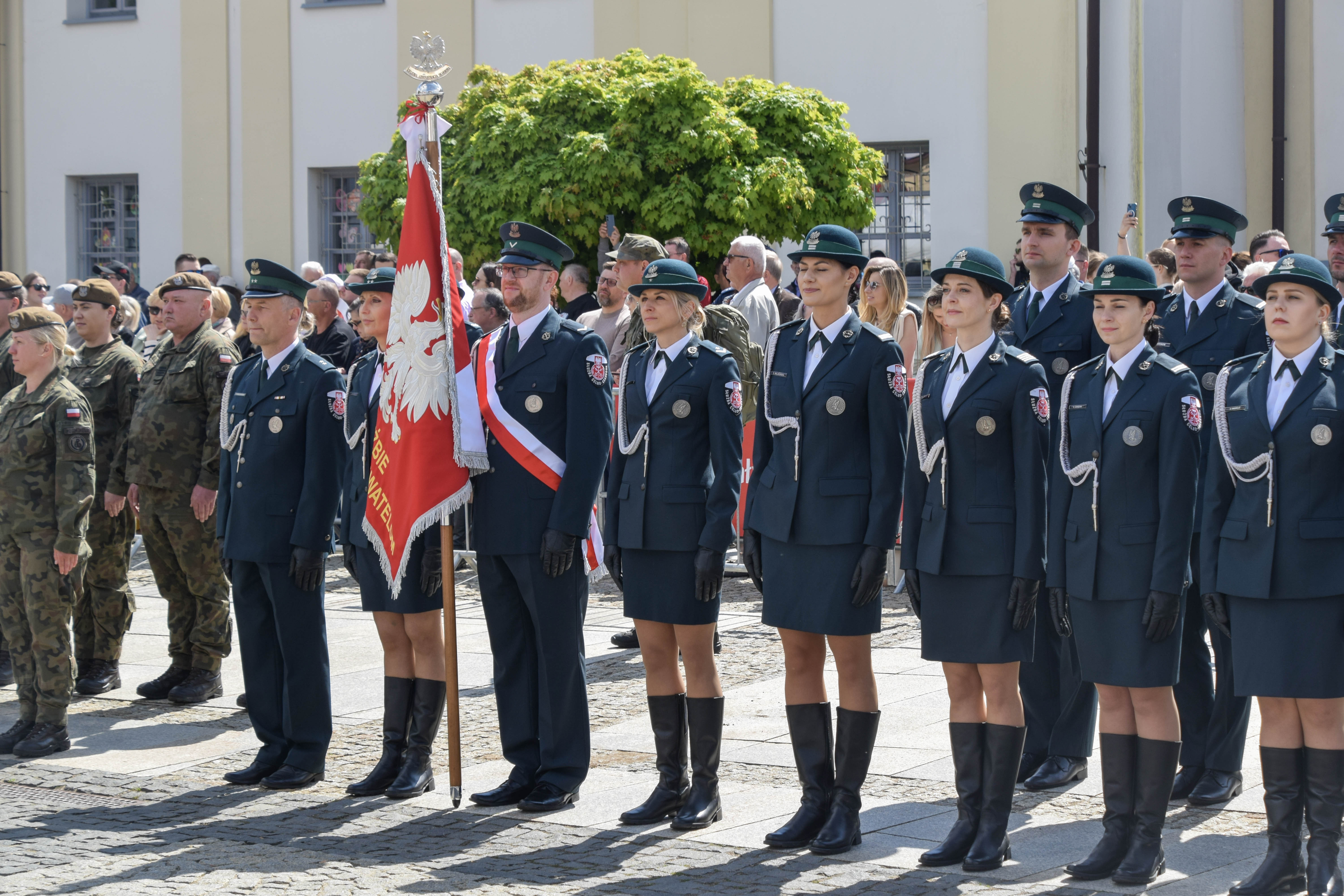 Pod pomnikiem Marszałka Józefa Piłsudskiego na białostockim Rynku Kościuszki, podczas uroczystości Narodowego Święta Trzeciego Maja reprezentował nas także poczet sztandarowy oraz Kompania Honorowa Podlaskiej KAS.