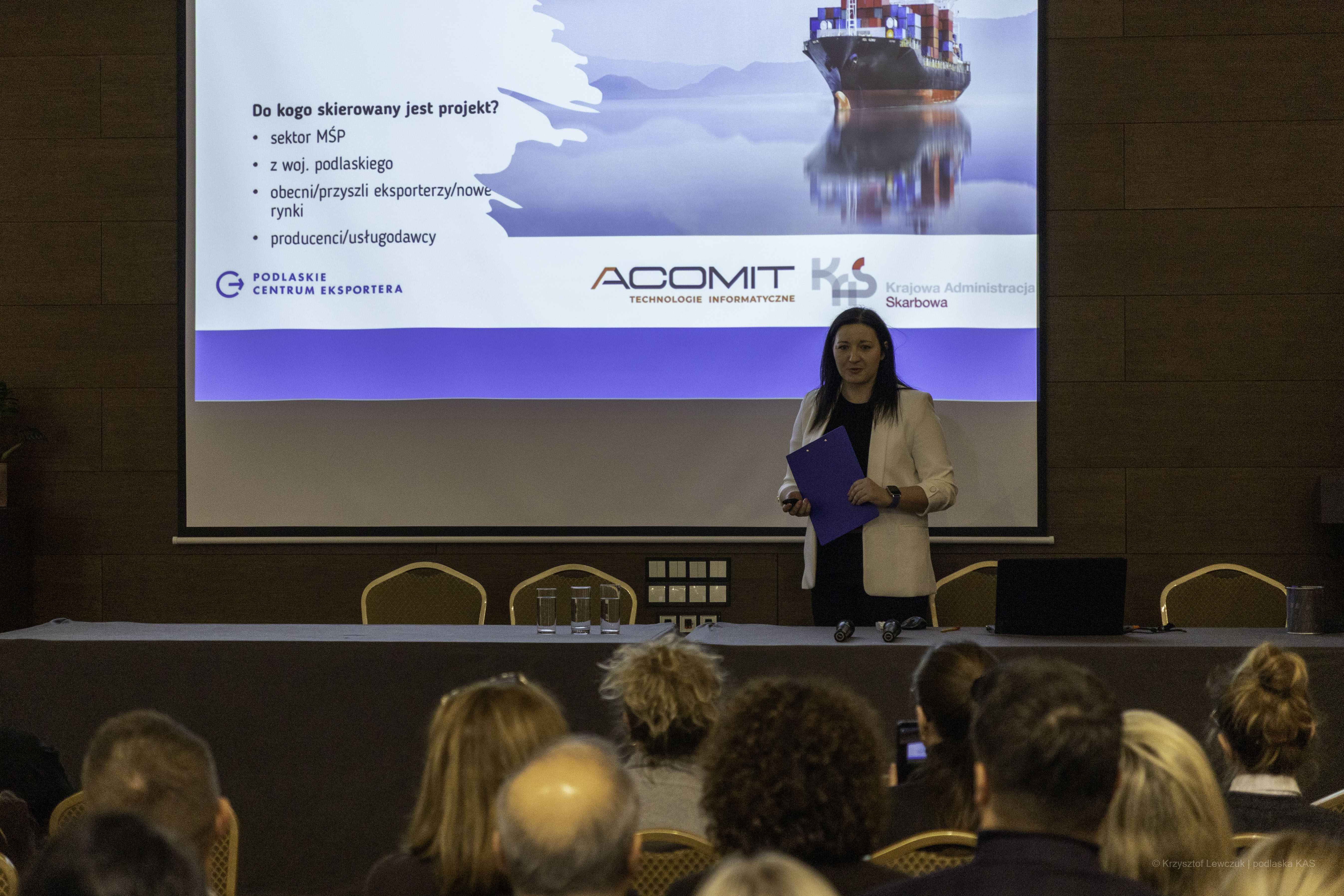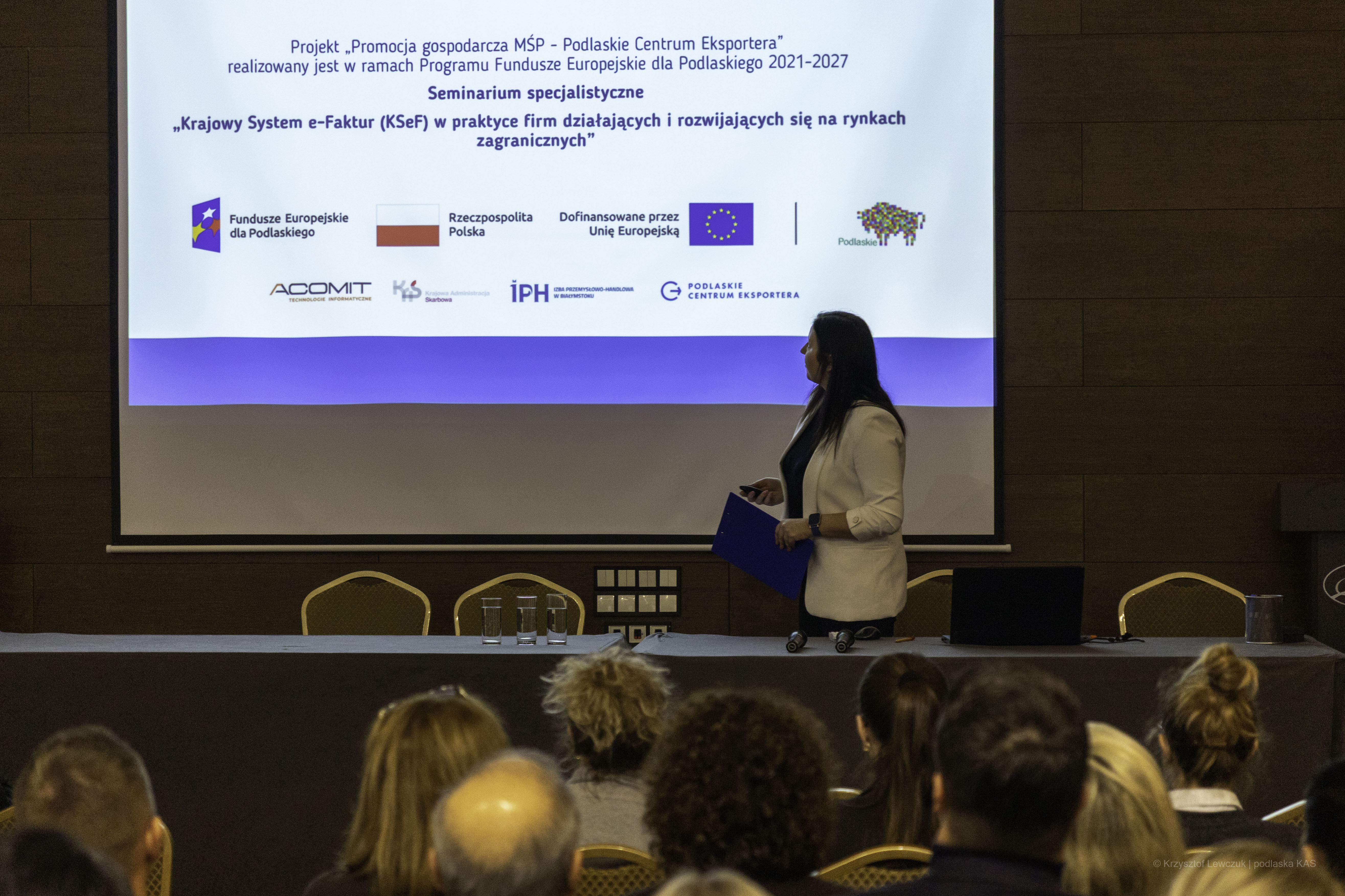 Wydarzenie zostało zorganizowane w ramach Projektu „Promocja gospodarcza MŚP – Podlaskie Centrum Eksportera”. Jego głównym celem było przybliżenie przedsiębiorcom z sektora Małych i Średnich Przedsiębiorstw praktycznych aspektów korzystania z systemu KSeF, ze szczególnym uwzględnieniem specyfiki działalności na rynkach międzynarodowych.