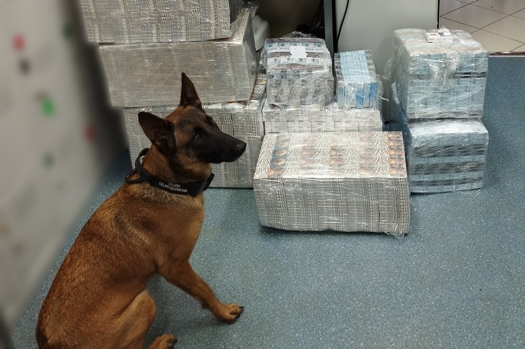 Mundurowi przeszukali również dwie posesje w pow. sokólskim i augustowskim, w których 35-latek mógł przechowywać kontrabandę. Tam zabezpieczono kolejne niemal 2500 paczek papierosów z białoruskim znakami akcyzy. Funkcjonariuszy w przeszukaniach pomieszczeń wspomagała Hiena, owczarek belgijski podlaskiej KAS wyszkolony do wykrywania wyrobów tytoniowych i waluty.