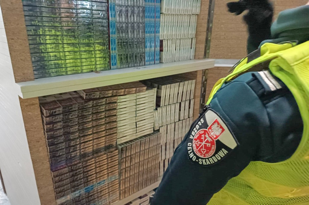 Funkcjonariusze Służby Celno-Skarbowej z Suwałk zatrzymali do kontroli w pobliżu polsko-litewskiej granicy w Ogrodnikach samochód dostawczy. Wewnątrz przewożonych w aucie mebli mundurowi znaleźli 70 tys. paczek papierosów z białoruskimi znakami akcyzy.