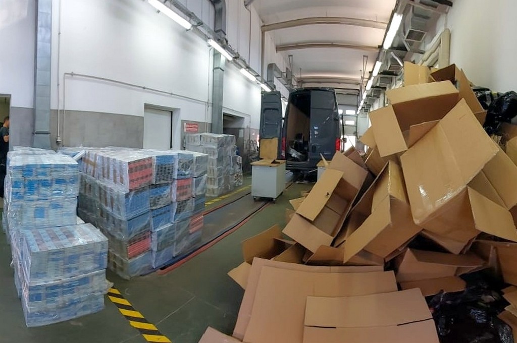 Podczas sprawdzania pojazdu okazało się, że pod przykrywką przesyłek kurierskich przewożono w nim kartony zawierające blisko 83 tys. paczek białoruskich papierosów.