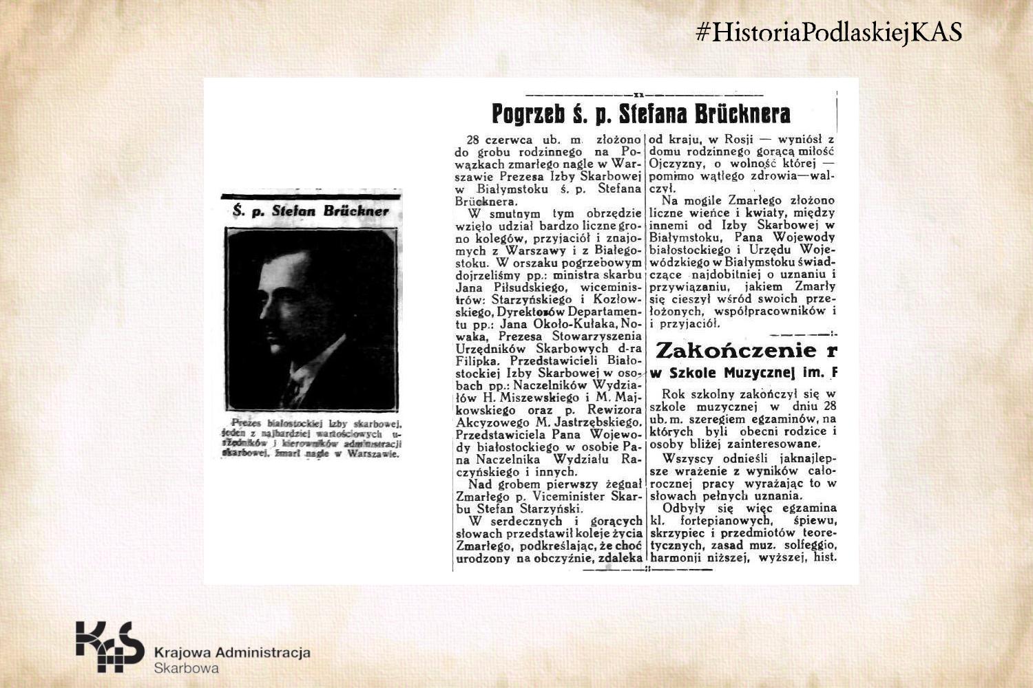 - Stefan Bruckner był jedną z ważniejszych postaci międzywojennej białostockiej skarbowości