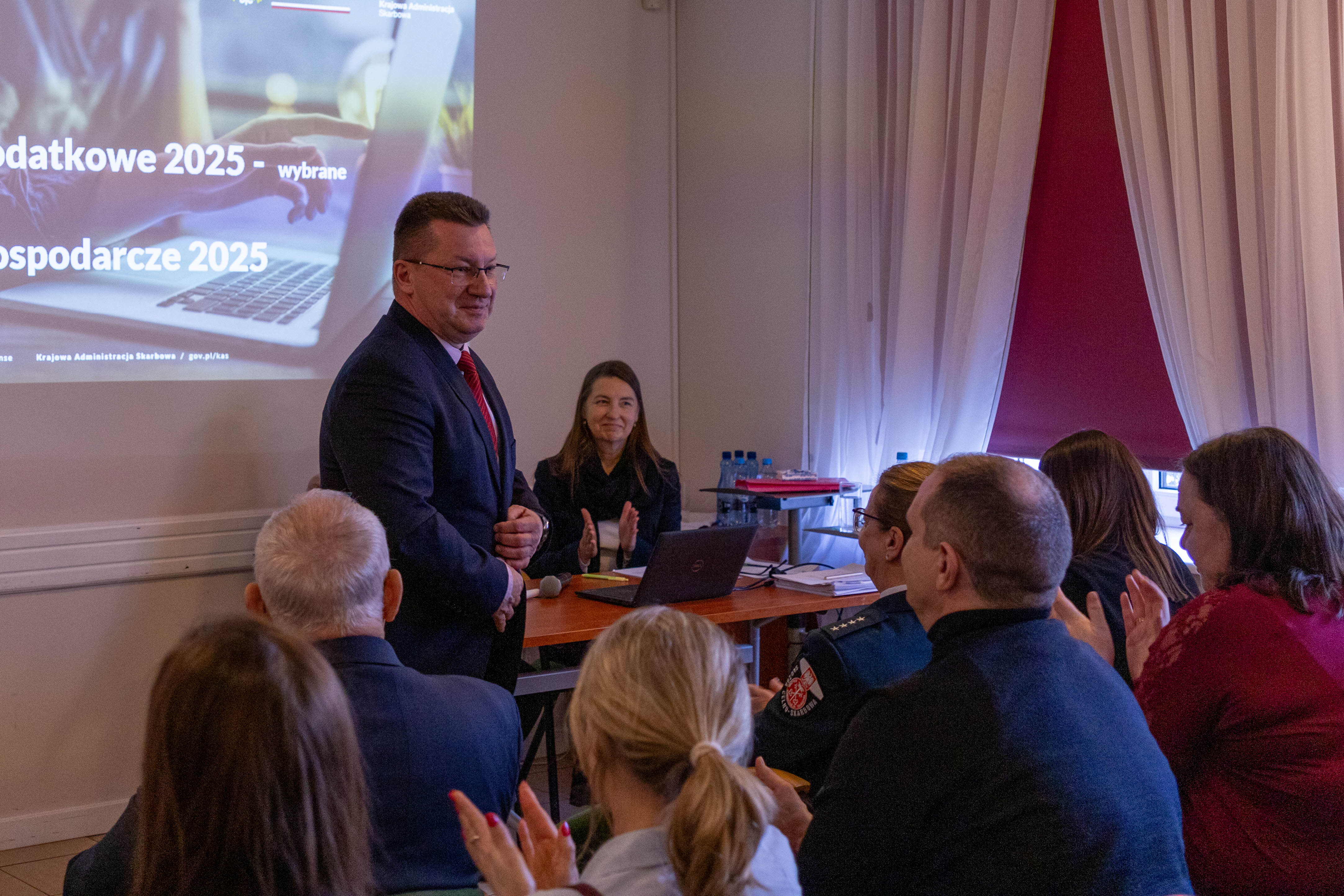 Głównym tematem spotkania były zmiany podatkowe, które wchodzą w życie w 2025 roku. Eksperci z podlaskiej KAS omówili zmiany w podatku dochodowym, podatku od towarów i usług (VAT), a także zmiany wynikające z nowelizacji Ordynacji podatkowej oraz Prawa celnego.