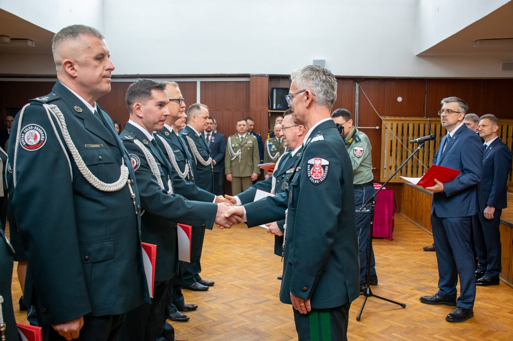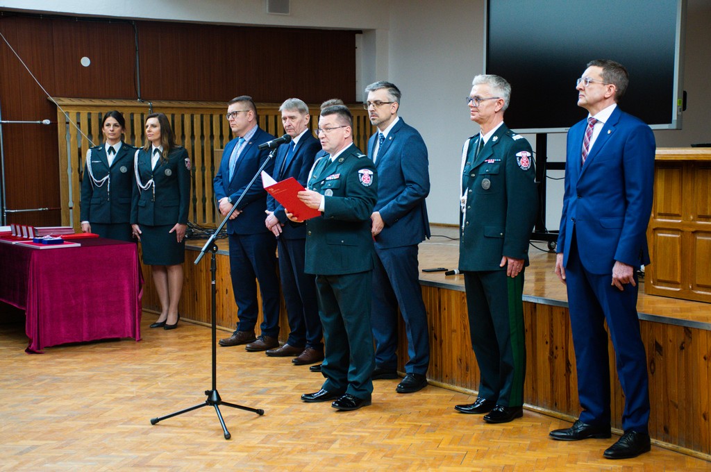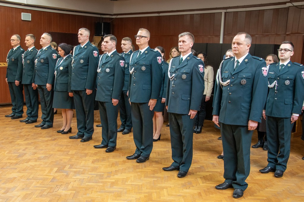 - Podczas uroczystej zbiórki wręczono odznaczenia przyznane przez Ministra Finansów i Gospodarki za zasługi dla Krajowej Administracji Skarbowej (KAS), medale okolicznościowe oraz awanse w Służbie Celno-Skarbowej i korpusie służby cywilnej.