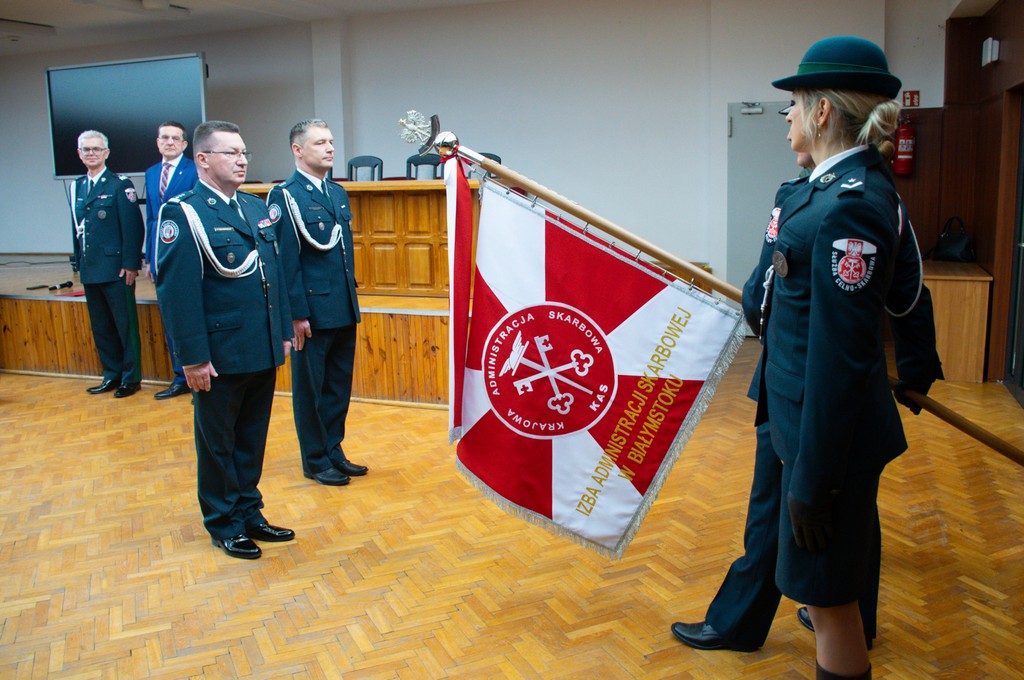 W trakcie uroczystości Dyrektor Izby Administracji Skarbowej (IAS) w Białymstoku insp. Piotr Szczepaniak wręczył przyznawane przez Ministra Finansów i Gospodarki odznaki „Zasłużony dla Krajowej Administracji Skarbowej” Wicewojewodzie Podlaskiemu Pawłowi Krutulowi oraz profesorowi Uniwersytetu w Białymstoku Rafałowi Dowgierowi.
