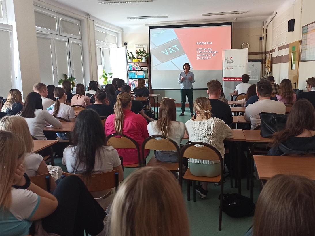 - Edukatorzy z podlaskiej KAS odwiedzą uczniów zainteresowanych szkół ponadpodstawowych i przeprowadzą lekcje o podatkach, szarej strefie, budżecie oraz o roli, zadaniach i usługach KAS.