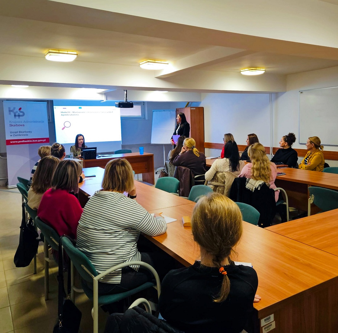 Wczoraj, równolegle w dziesięciu urzędach skarbowych woj. podlaskiego odbyły się stacjonarne szkolenia przygotowujące przedsiębiorców do wdrożenia i stosowania KSeF. Koordynatorzy KSeF z Pierwszego i Drugiego US w Białymstoku, Augustowa, Bielska Podlaskiego, Hajnówki, Kolna, Łomży, Moniek, Wysokiego Mazowieckiego i Zambrowa, zgodnie z przyjętym wcześniej harmonogramem, omówili sześć modułów z cyklu szkoleń "Środy z KSeF". Online, z zainteresowanymi tematem, spotkali się natomiast eksperci z Izby Administracji Skarbowej w Białymstoku.