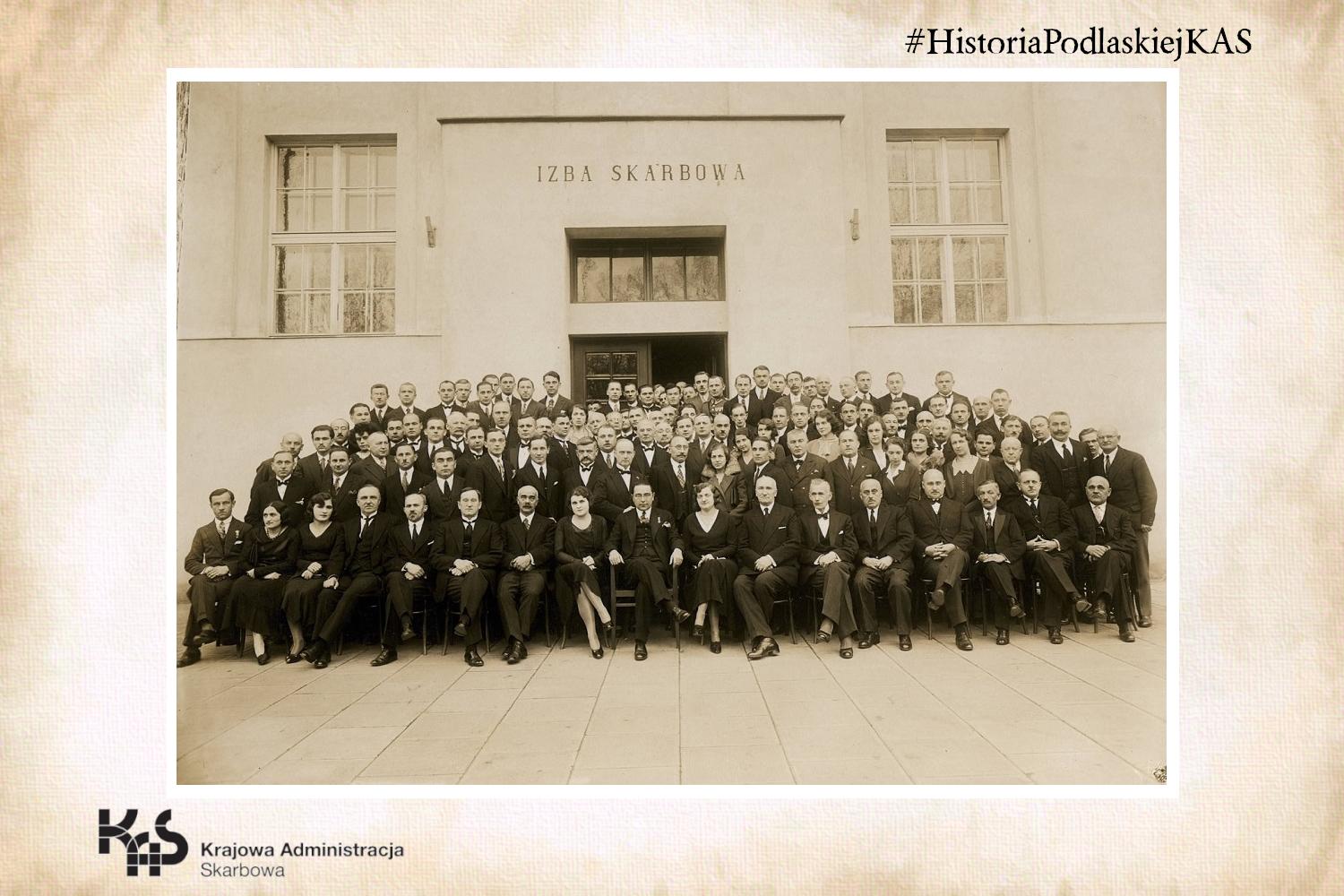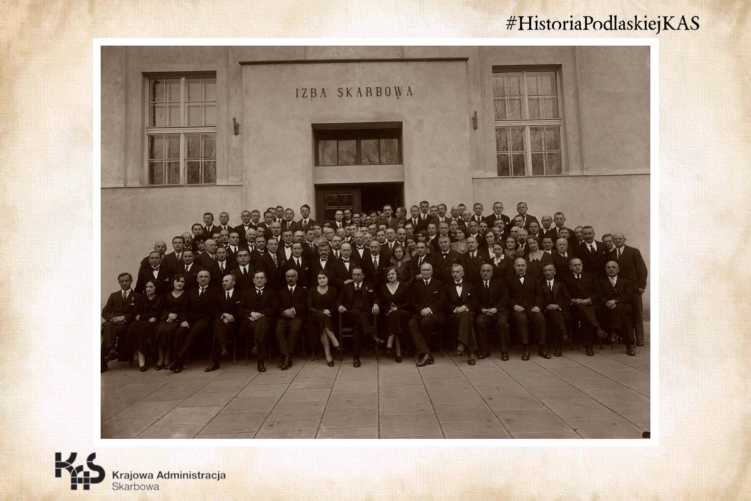 - Możemy na nich zobaczyć załogę Izby Skarbowej w Białymstoku z przełomu lat 20. i 30. przed ówcześnie nową siedzibą.