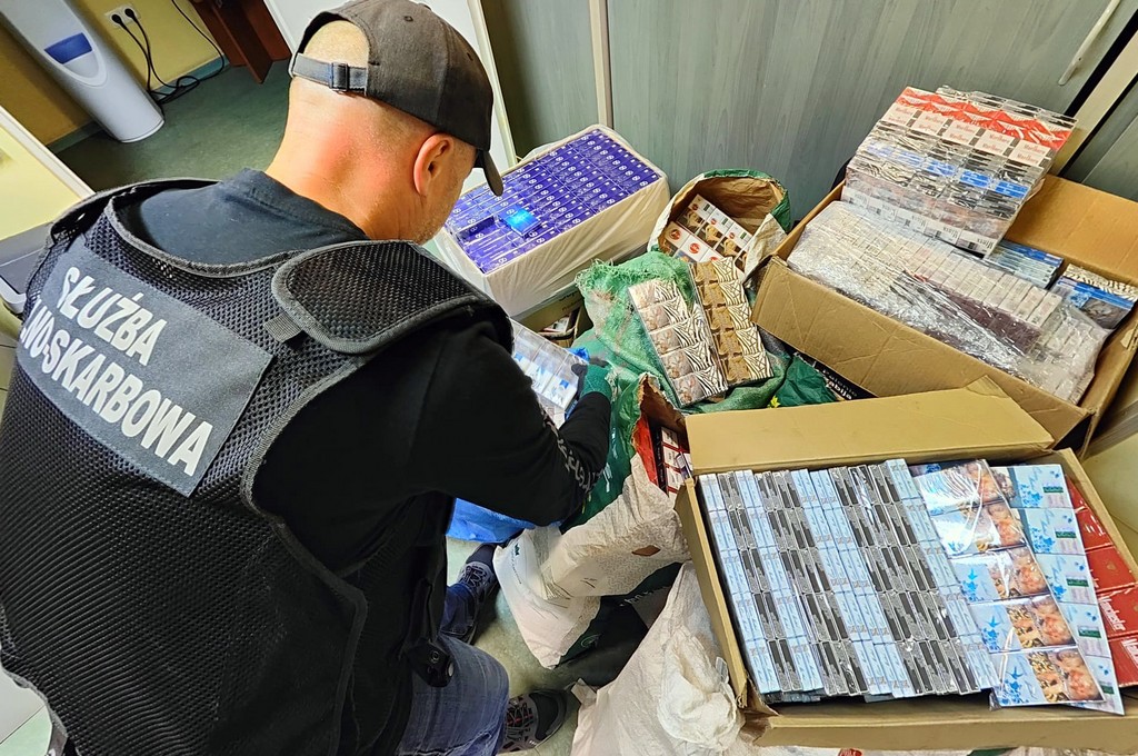 Podczas przeszukania mieszkania mężczyzny mundurowi znaleźli w jednym z pokojów ponad 3200 paczek papierosów pochodzących z przemytu oraz 10 kg tytoniu bez polskich znaków akcyzy. Wartość rynkowa zabezpieczonego towaru to niemal 55 tys. zł.