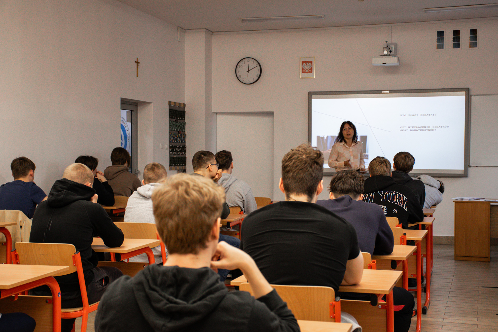 Swoje lekcje eksperci rozpoczęli od przedstawienia Krajowej Administracji Skarbowej (KAS). Opowiedzieli o roli jaką pełni w państwie, a także o codziennych obowiązkach pracowników i funkcjonariuszy, zachęcając jednocześnie do wstąpienia w jej szeregi w przyszłości.