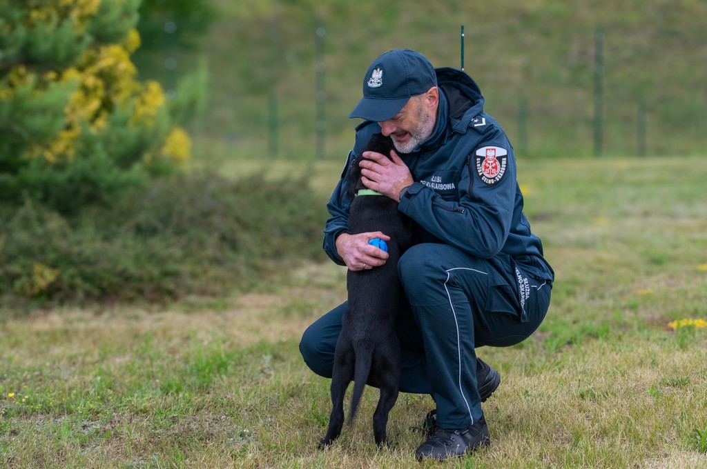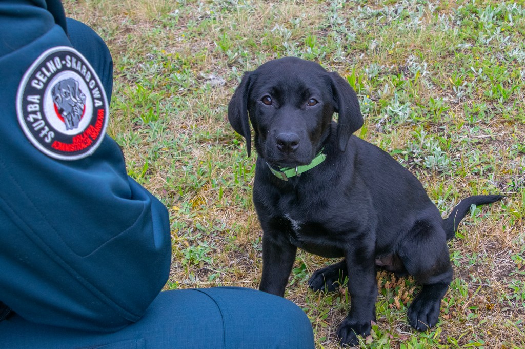 Zora to 3-miesięczny, czarny labrador retriever. Kilka dni temu zasiliła szeregi podlaskiej KAS. Jej przewodnikiem został funkcjonariusz Grzegorz. Zora jest jego trzecim psem służbowym.