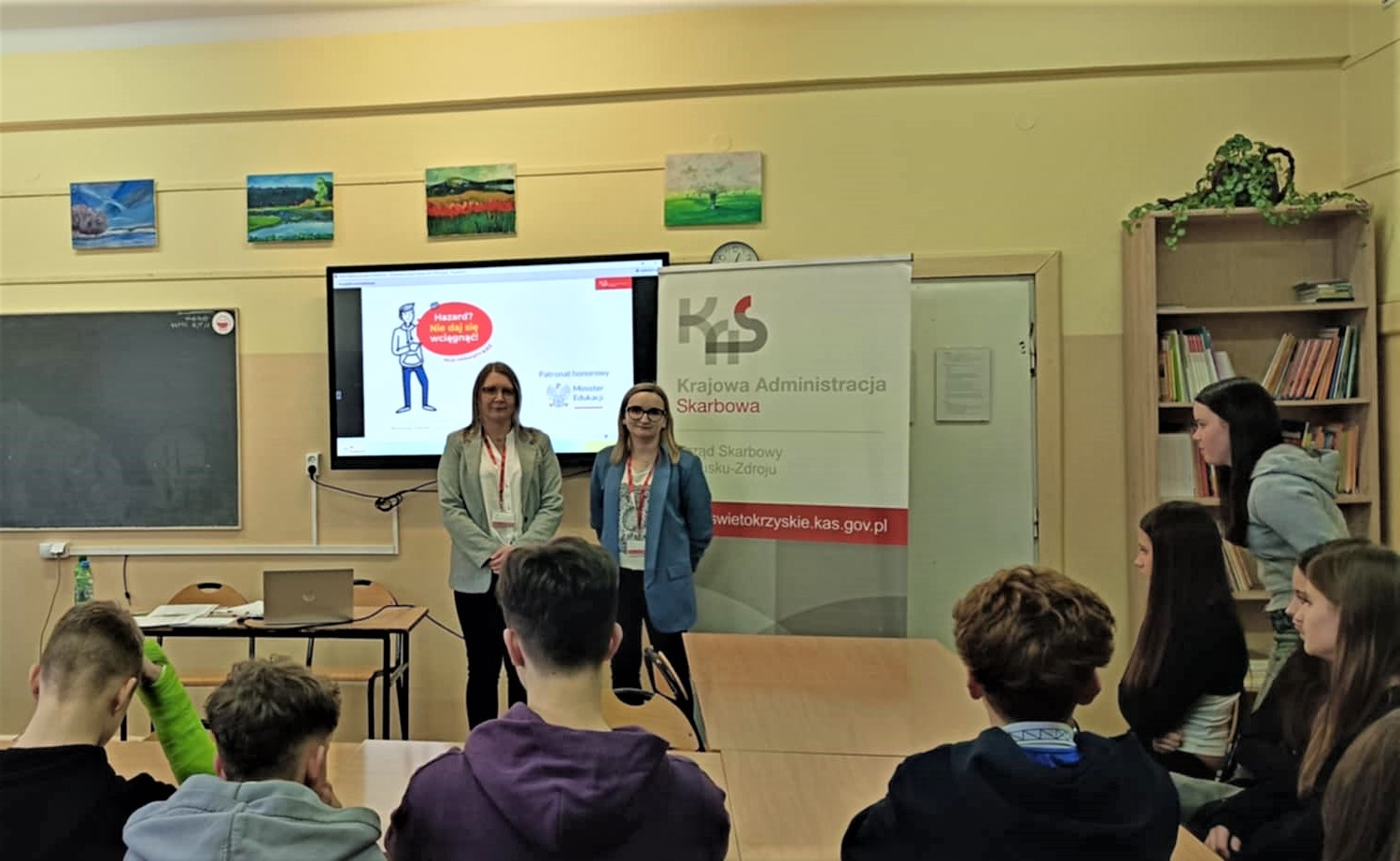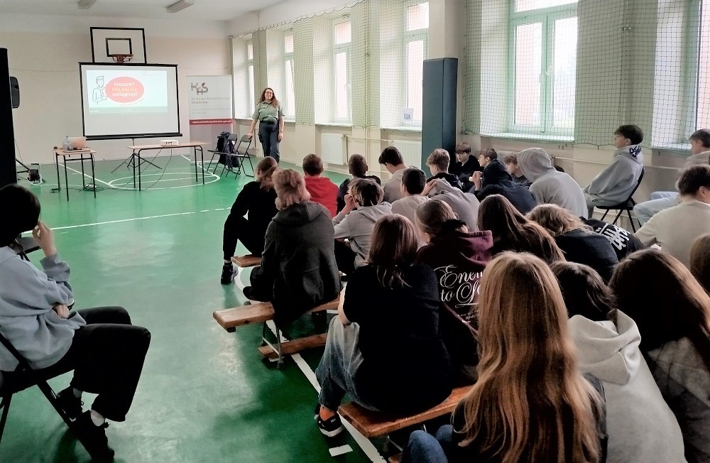 „Hazard? Nie daj się wciągnąć!”- akcja edukacyjna 2025/2026. Wizyta pracowników świętokrzyskiej KAS w Chmielniku, Adamowie i Busku-Zdroju