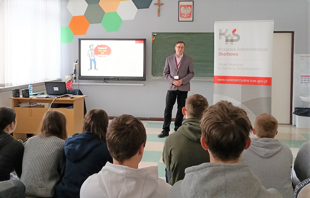 Podczas lekcji eksperci świętokrzyskiej KAS szczegółowo omówili kwestie dotyczące: