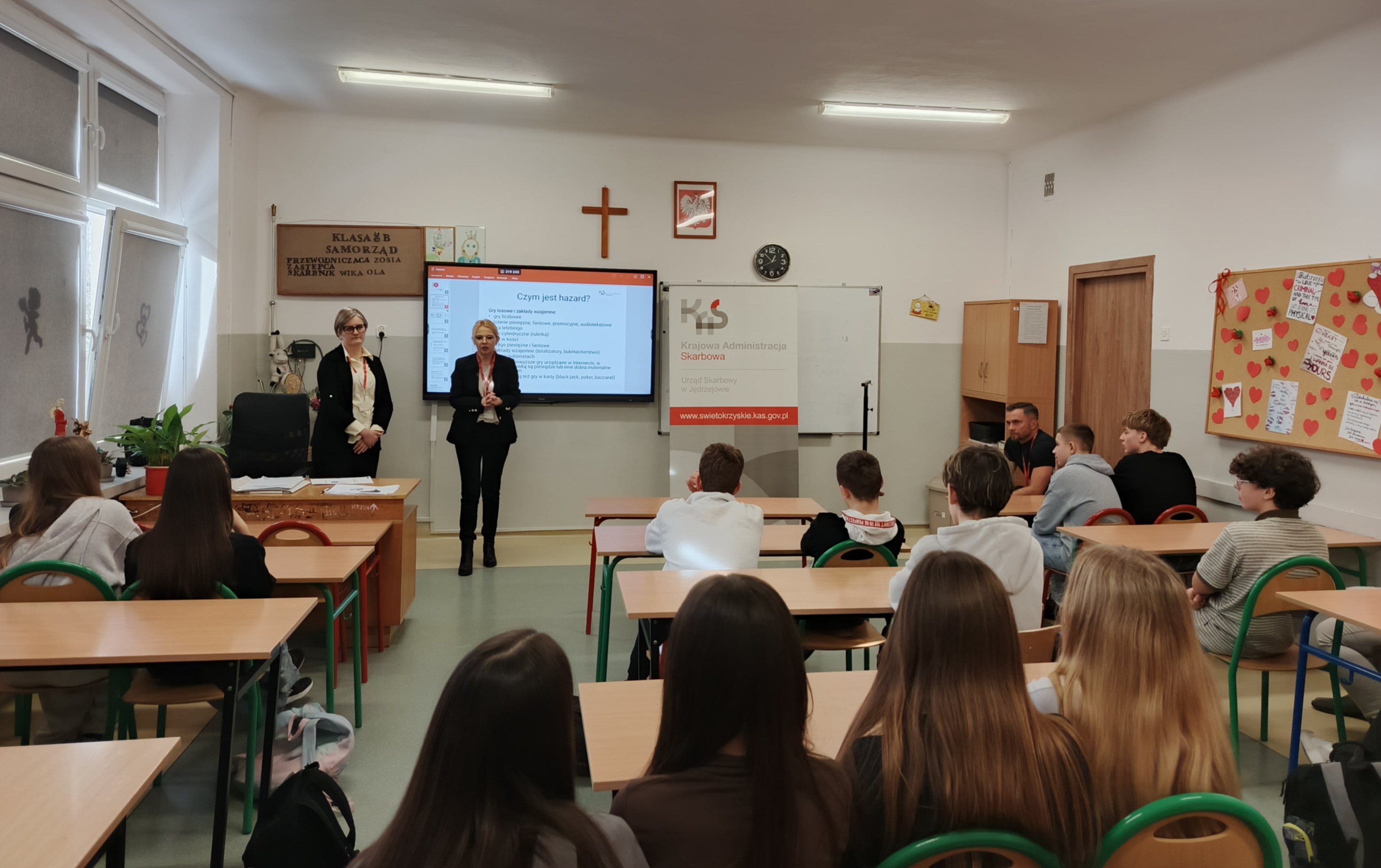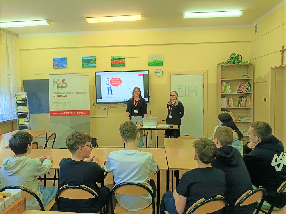 W pierwszym kwartale 2026 roku pracownicy i funkcjonariusze świętokrzyskiej KAS odwiedzili uczniów z 11 klas szkół podstawowych w Chęcinach, Janiku, Jędrzejowie i Busku-Zdroju. W sumie przeprowadzili 7 wykładów.
