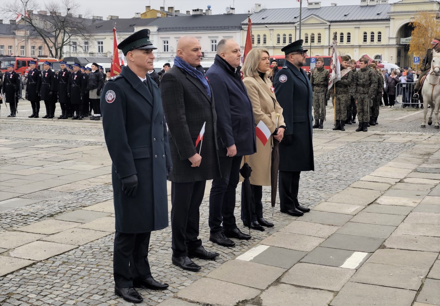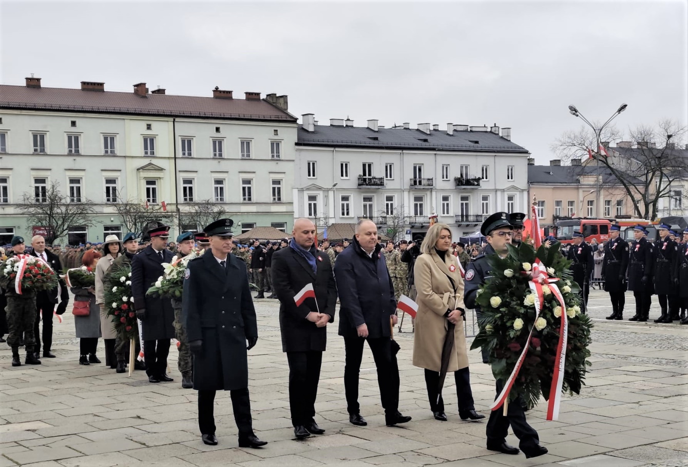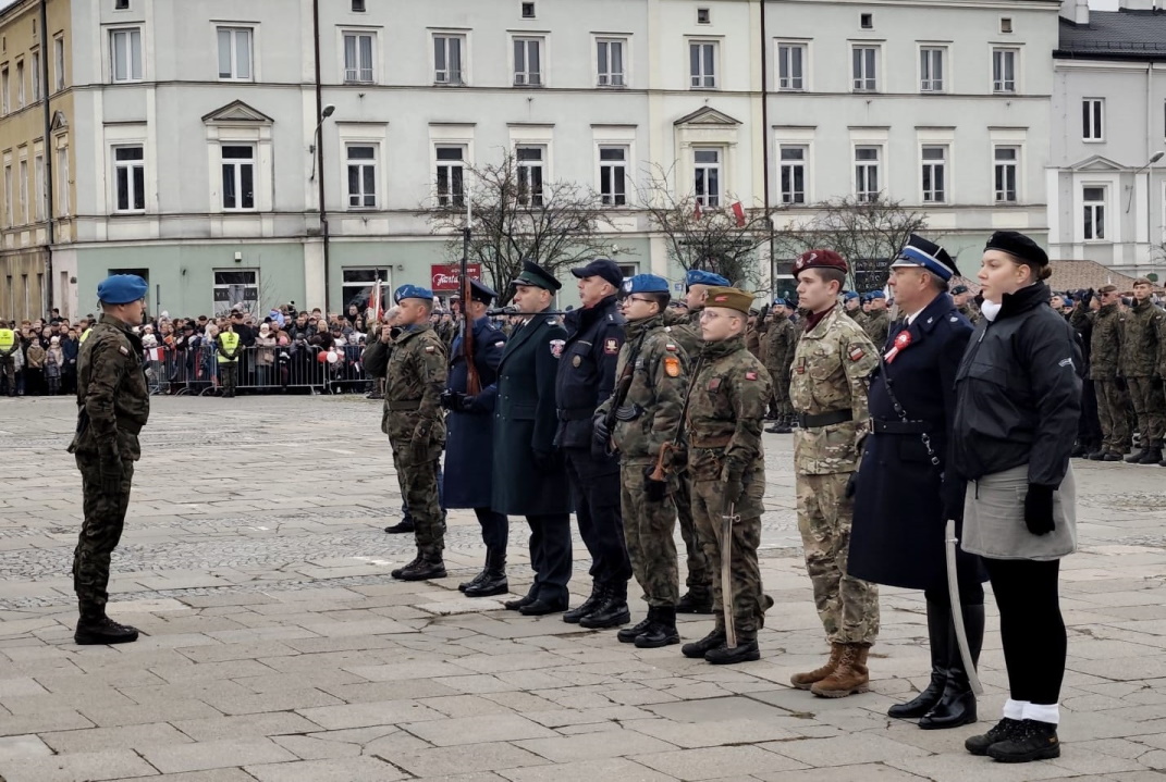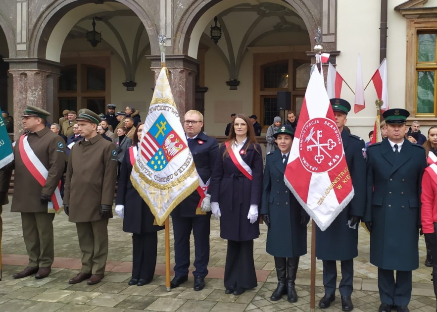 Służby mundurowe naszego województwa, w tym Funkcjonariusze Służby Celno-Skarbowej świętokrzyskiej KAS wystawili Poczet Sztandarowy, z dumą i radością nieśli flagę narodową w przemarszu ulicami miasta, a także uczestniczyli w zmianie warty honorowej przed pomnikiem Marszałka Józefa Piłsudskiego.