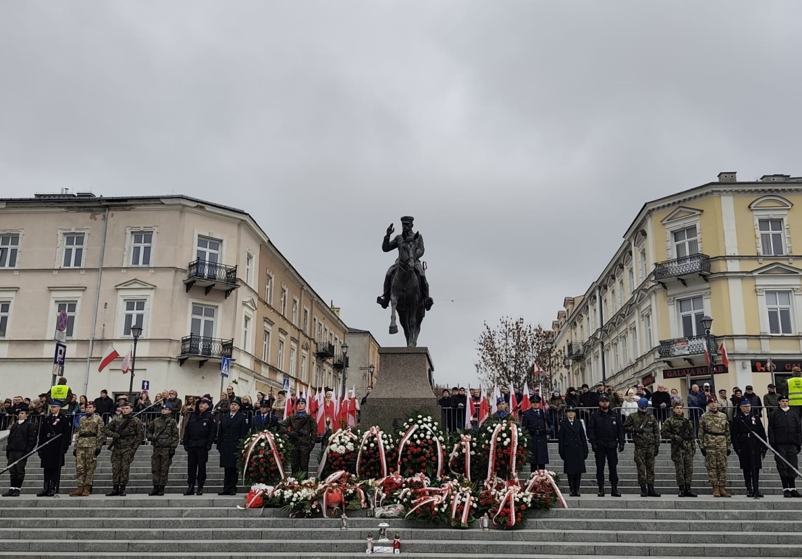 - Oficjalna część uroczystości odbyła się przed pomnikiem Marszałka Józefa Piłsudskiego na Placu Wolności w Kielcach.
