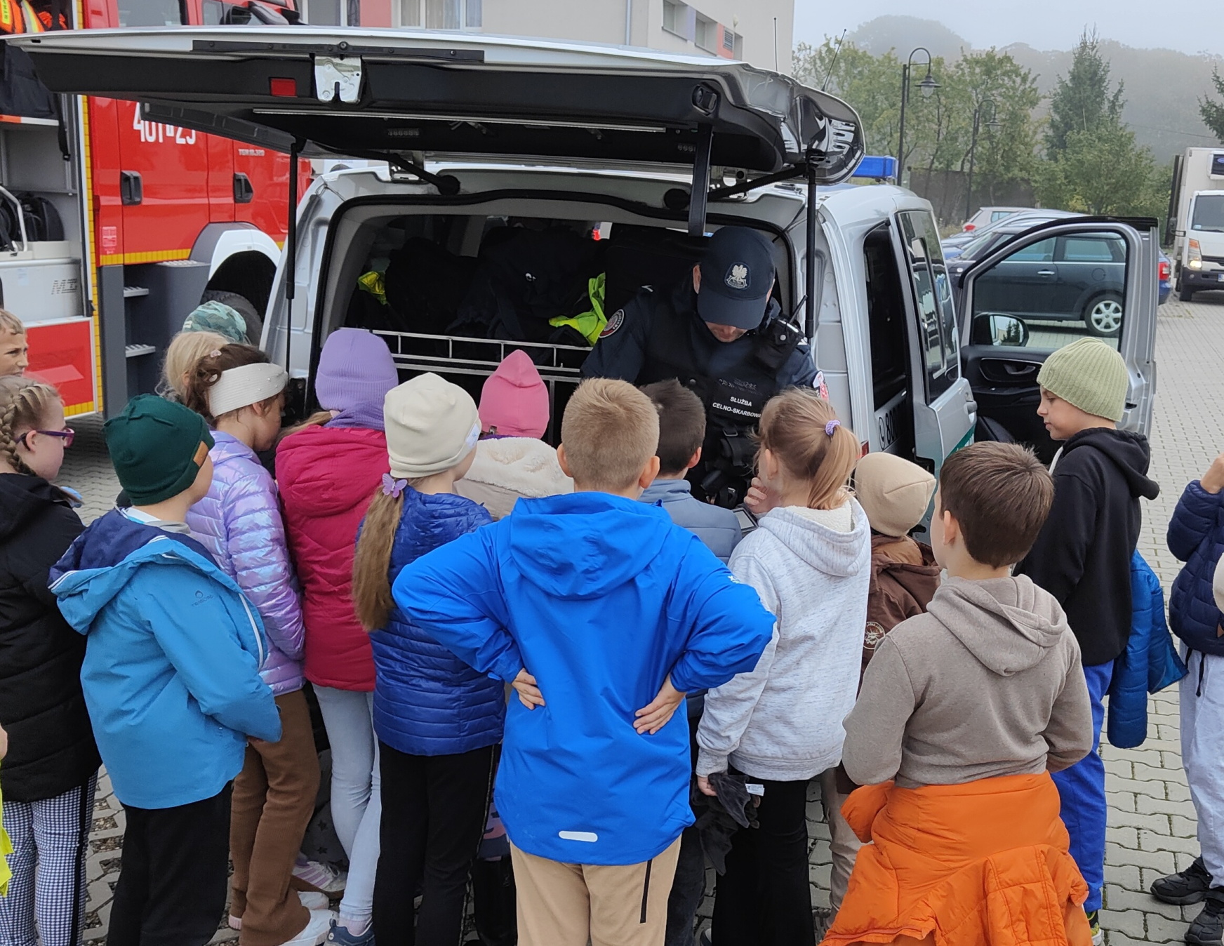 Podczas zajęć dzieci były podzielone na trzy grupy wiekowe. Mundurowi zapoznali je ze swoimi zadaniami i obowiązkami służbowymi. Zaprezentowali także narzędzia i specjalistyczny sprzęt, który wykorzystują w swojej codziennej pracy. Dużym zainteresowaniem najmłodszych cieszyło się wyposażenie radiowozu Służby Celno-Skarbowej. Dzieci wczuwały się w rolę kierowcy samochodu oznakowanego włączając i wyłączając sygnały świetlne i dźwiękowe. Chętnie też przymierzały kamizelki kuloodporne i hełmy oraz uczyły się sprawdzać noktowizorem podwozie samochodu.