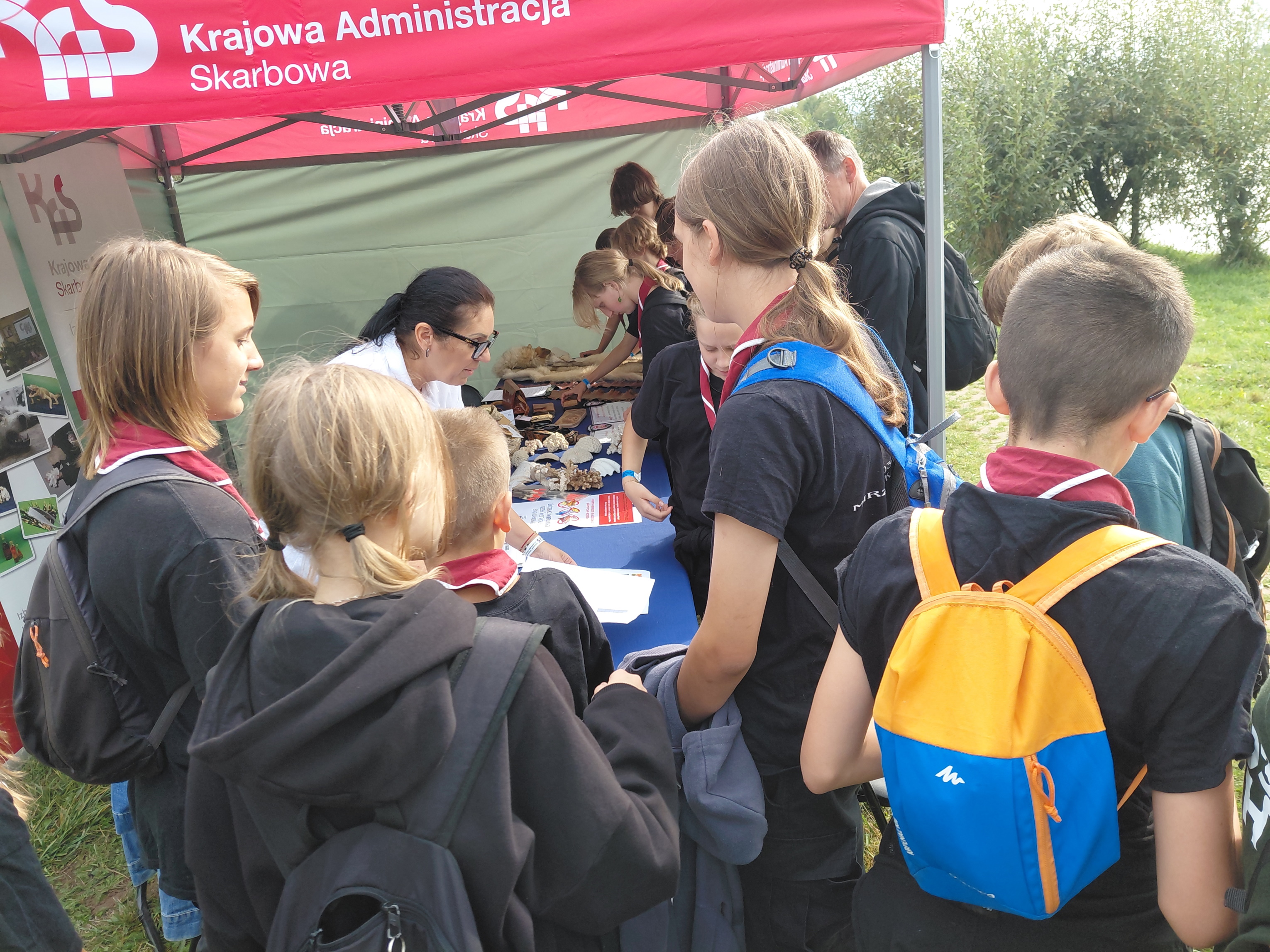 Na stoisku edukacyjnym świętokrzyskiej KAS uczestnicy z dużym zainteresowaniem oglądali okazy CITES (czyli przedmioty wykonane z gatunków zwierząt i roślin chronionych Konwencją Waszyngtońską, zarekwirowane turystom przy próbie ich przemytu) takie jak: skórę z wilka szarego, kobry indyjskiej, torebki, portfele i buty ze skór krokodyla czy węża, koralowce, muszle przydaczni oraz kolce jeżozwierza. Harcerze poznali codzienną pracę i służbę w KAS oraz zadania, które realizujemy. Podsumowaniem zdobytej wiedzy były przygotowane krzyżówki, rebusy i zagadki. Młodzi ludzie świetnie poradzili sobie z ich rozwiązaniem.