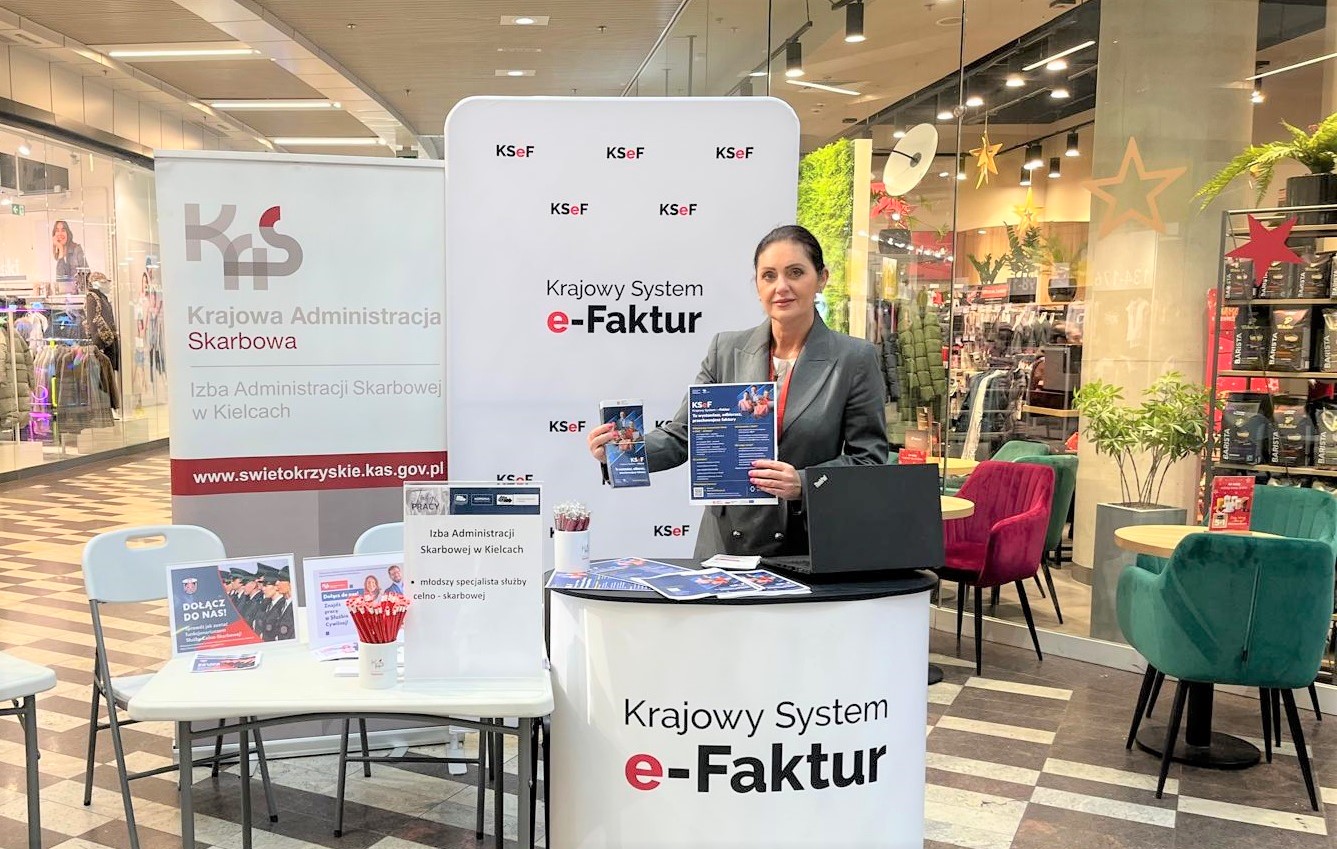- Świętokrzyska Krajowa Administracja Skarbowa (KAS) zorganizowała stoisko informacyjno-promocyjne na temat Krajowego Systemu e-Faktur (KSeF) w Galerii Korona w Kielcach.