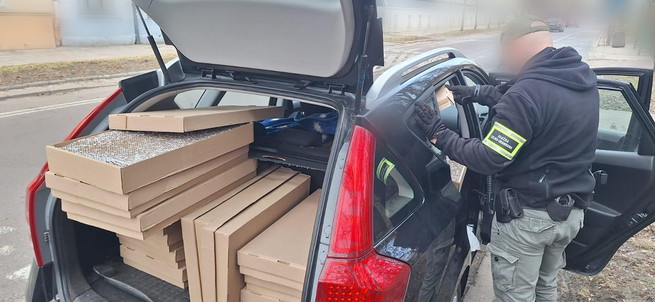 W samochodzie znaleźli 25 płaskich kartonów zawierających łącznie 100.000 szt. nielegalnych papierosów i tytoń do palenia. W celu ukrycia ładunku, pudełka przewożono przykryte kocem.