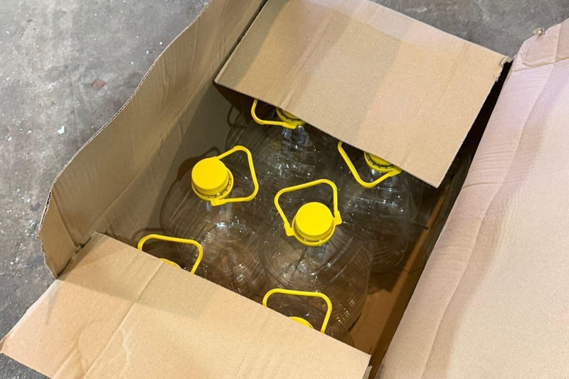 - Służby zabezpieczyły ponad 1900 litrów skażonego spirytusu, puste butelki oraz ponad 30 tys. szt. papierosów bez polskich znaków akcyzy.