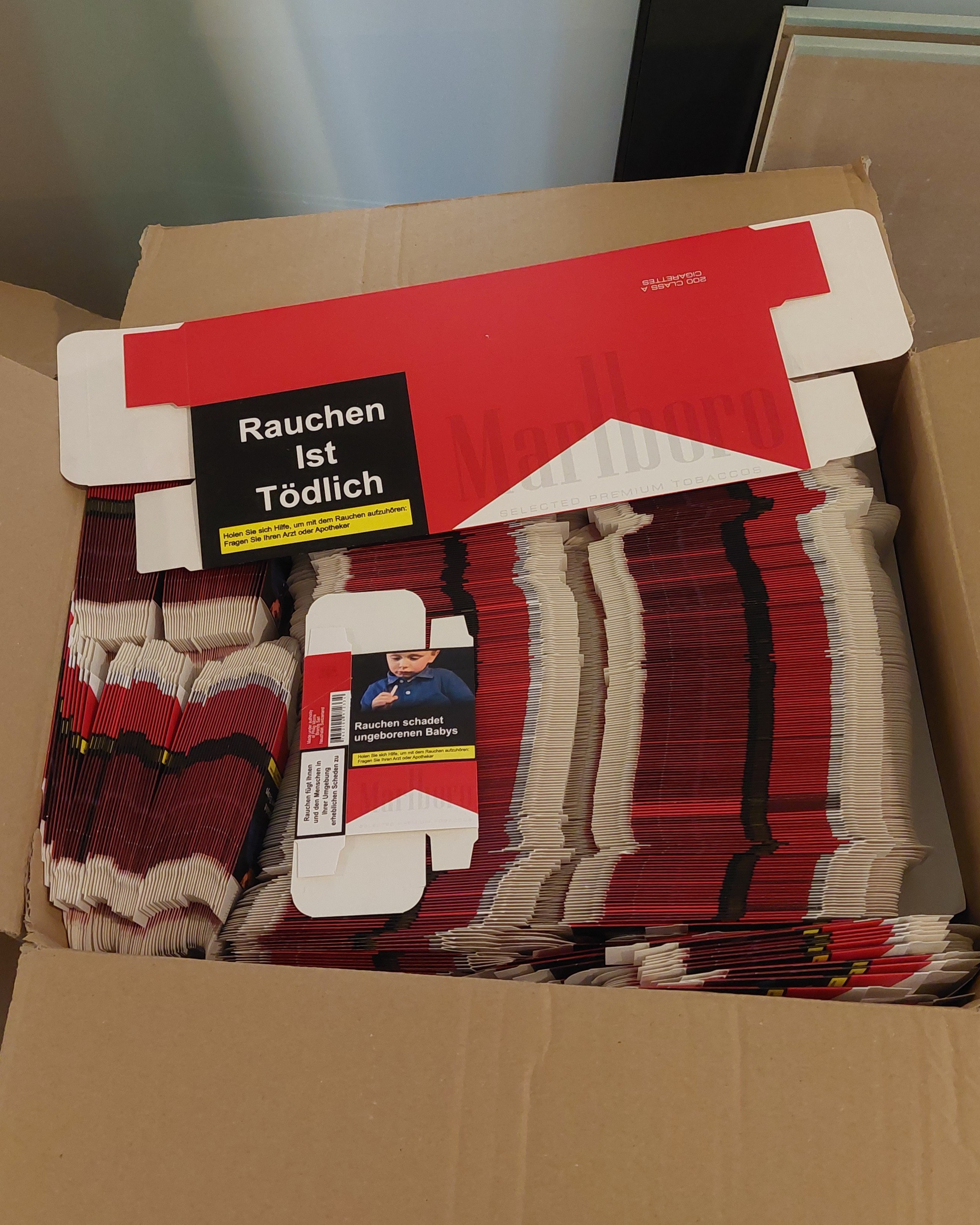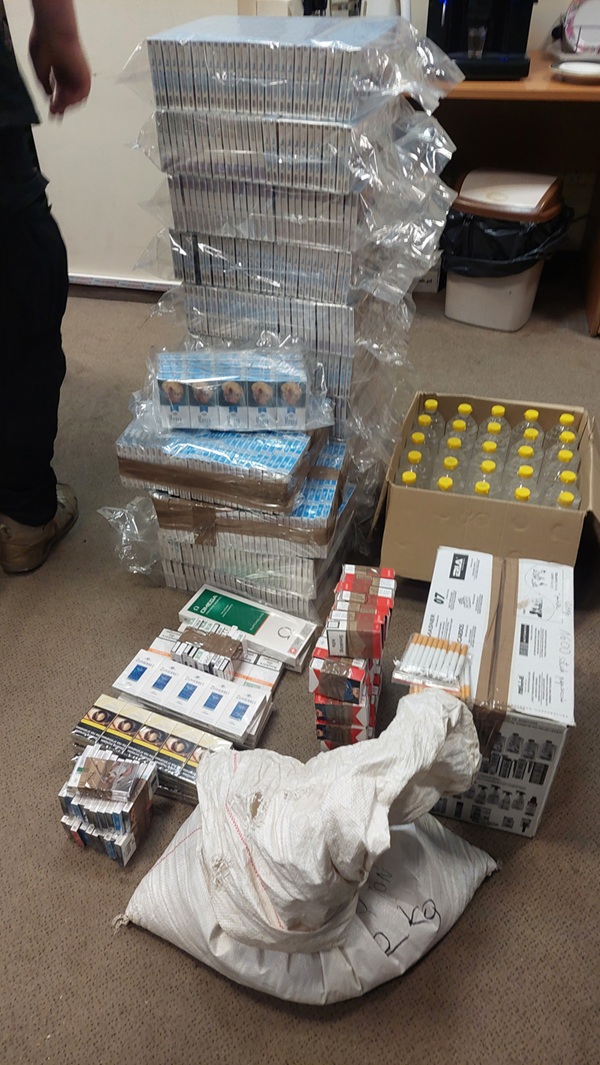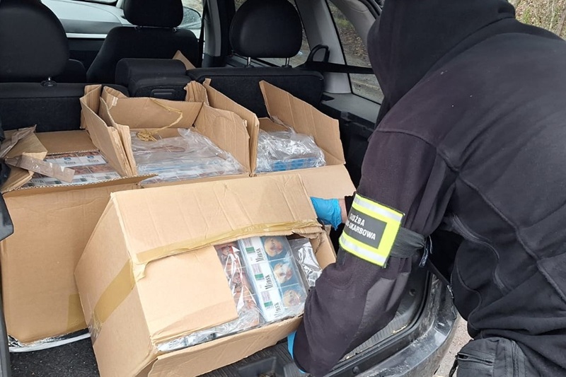 Dalsze kroki funkcjonariusze skierowali na posesję należącą do mężczyzny, gdzie wykryli kolejne nielegalne wyroby akcyzowe, 171 paczek papierosów po 20 szt. w paczce i jedno opakowanie zbiorcze zawierające 1600 szt. papierosów oraz 2 kg tytoniu do palenia. Kontrabandę SCS znalazła w budynku mieszkalnym i w garażu. Na terenie posesji znaleziono również 43 kg opakowań do papierosów znanych marek.