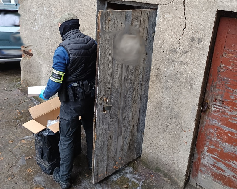 Łódzka KAS znalazła nielegalne wyroby akcyzowe również w pomieszczeniu gospodarczym, którym dysponował 45-letni kierowca taksówki. Zabezpieczono 240 paczek nielegalnych papierosów.