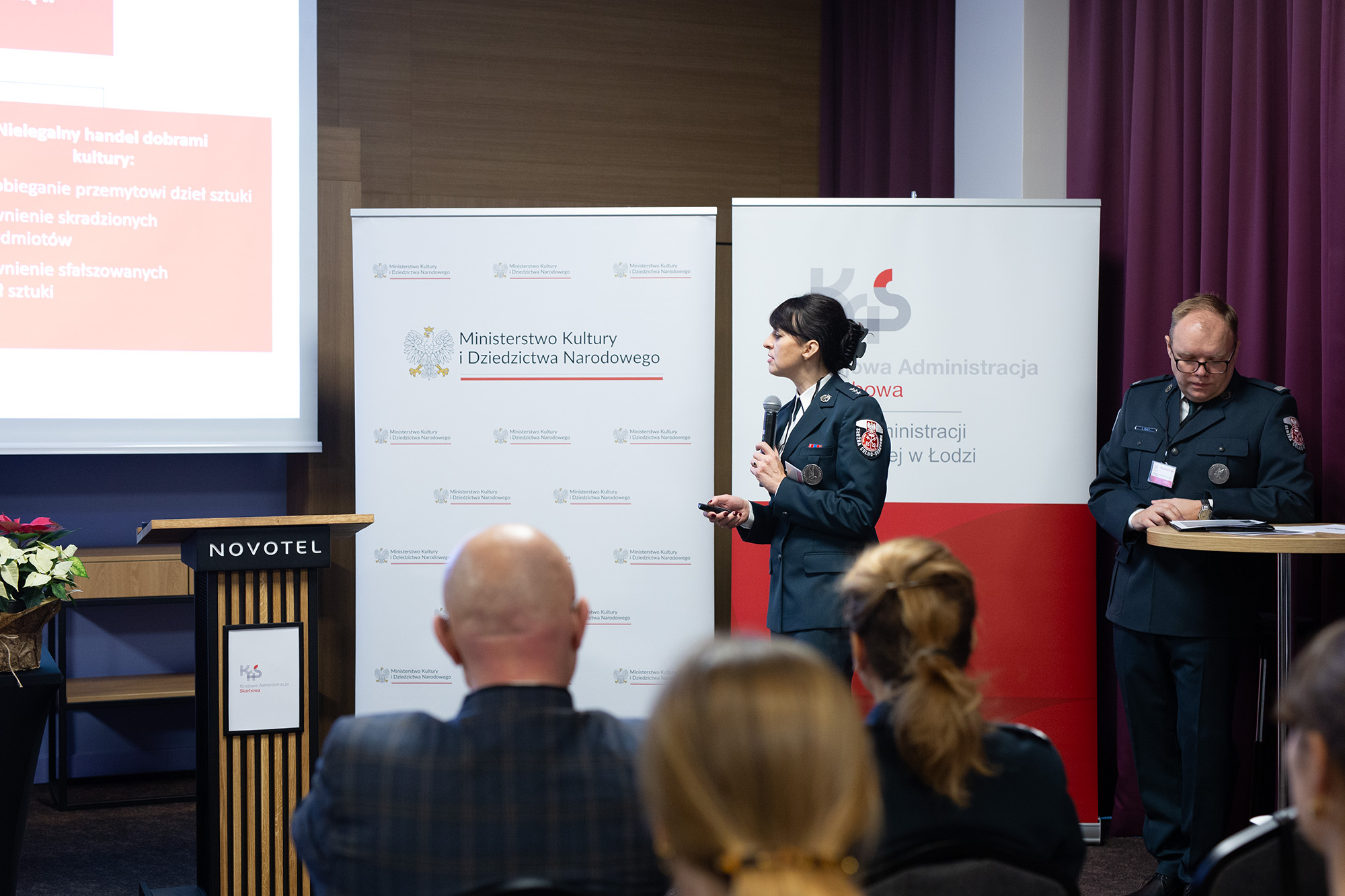 Eksperci z Departamentu Ceł MF, kom. Anna Skaldawska i kom. Rafał Tusiński przedstawili historię ochrony dóbr kultury i okazów CITES przez KAS, w szczególności podsumowali 25 lat działań w tych obszarach i rolę koordynatorów w skutecznym egzekwowaniu obowiązków pozafiskalnych.