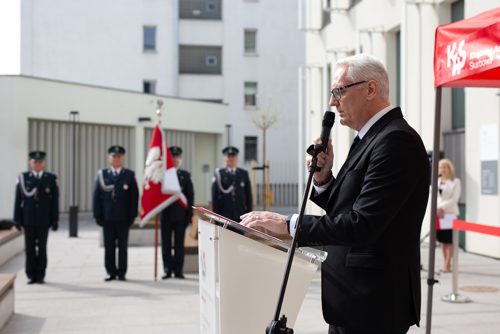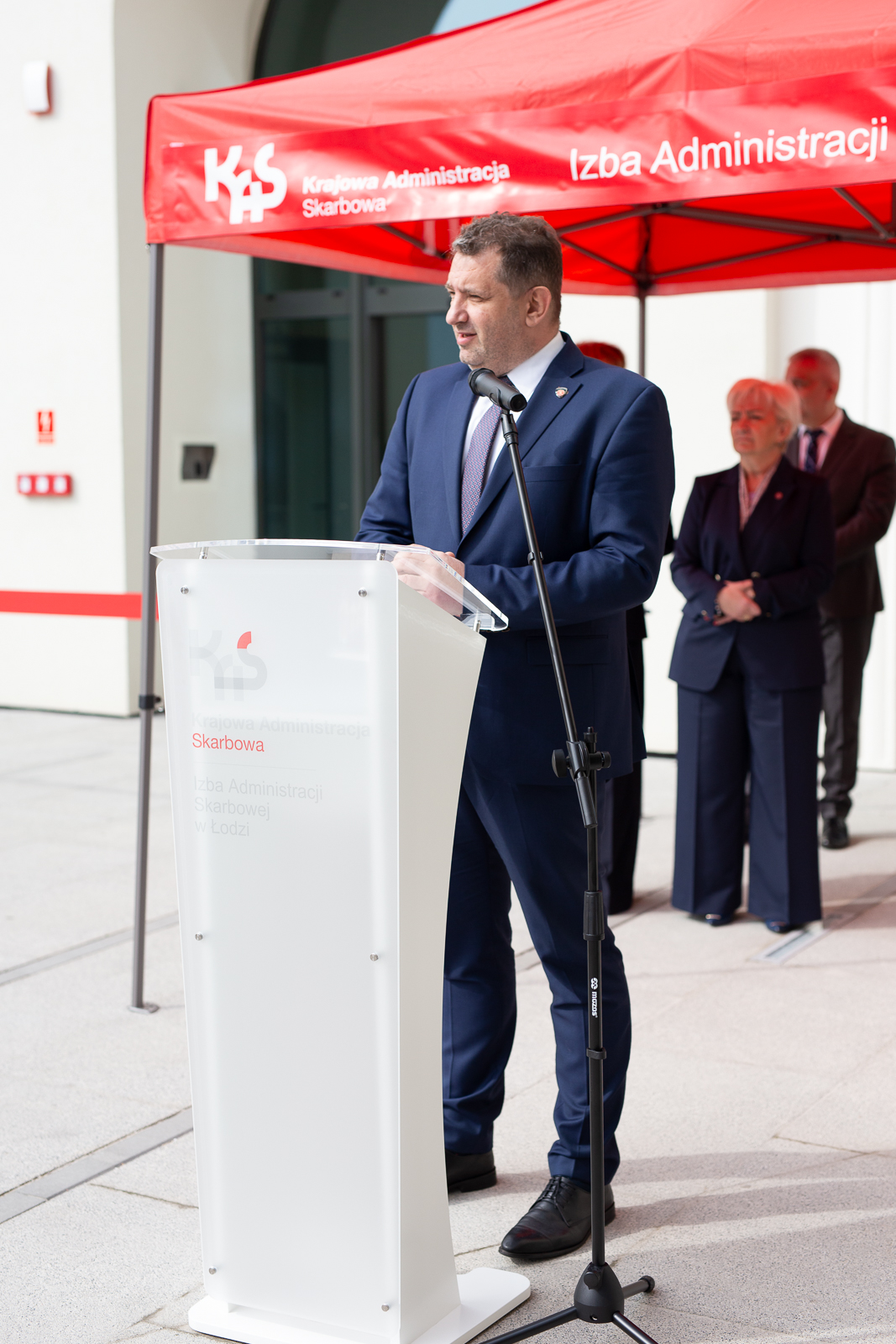 Tomasz Szymański podziękował za finansowe wsparcie inwestycji udzielone przez Szefa KAS. Kończąc przemówienie podziękował wszystkim pracownikom, którzy przyczynili się do realizacji projektu.