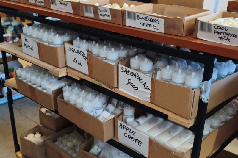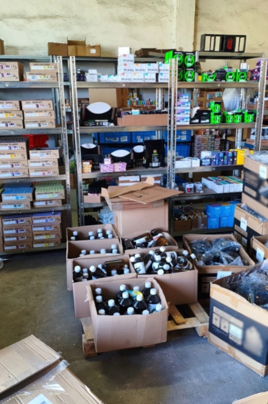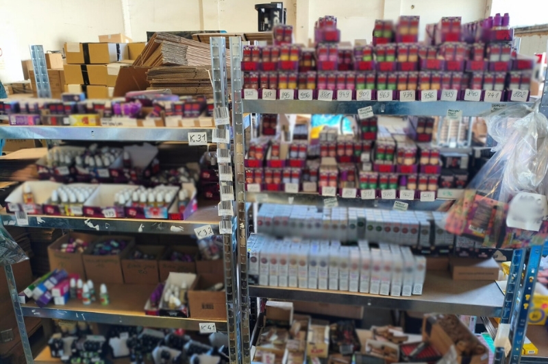 - ponad 13 tys. pojemników z płynami do e-papierosów o łącznej objętości ponad 70 l,