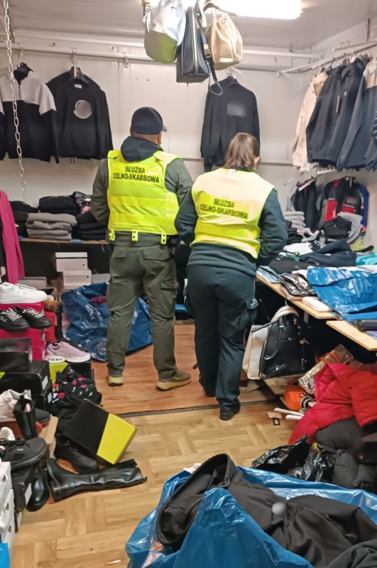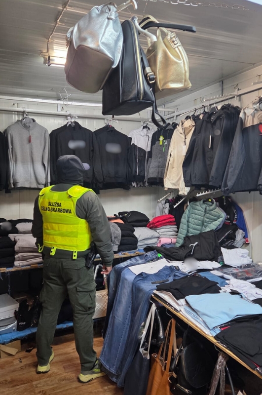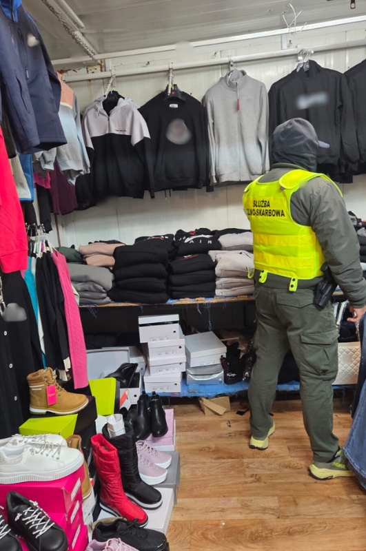 Na jednym ze stoisk było ukryte wejście do drugiej części pawilonu handlowego, w którym była oferowana do sprzedaży odzież damska i męska, obuwie oraz torebki z podrobionymi znakami towarowymi renomowanych marek z branży odzieżowej. Funkcjonariusze zabezpieczyli 862 szt. odzieży i galanterii o wartości ponad 854 tys. zł.