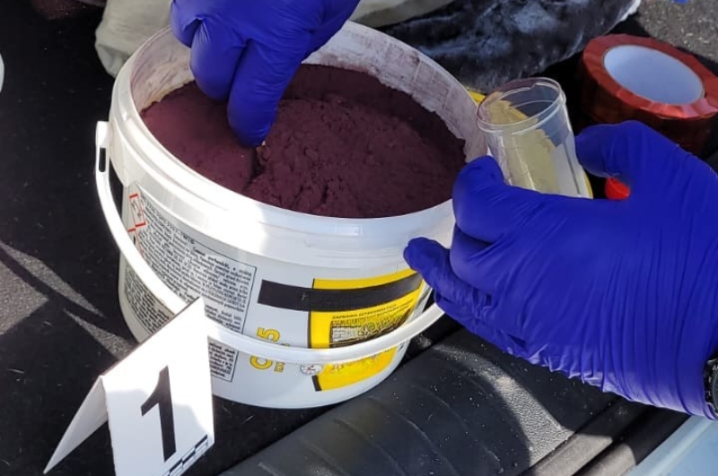 Po sprawdzeniu substancji - spektrometrem okazało się, że w wiaderku przewożone jest 2 356 gram fosforu czerwonego, prekursora narkotykowego.