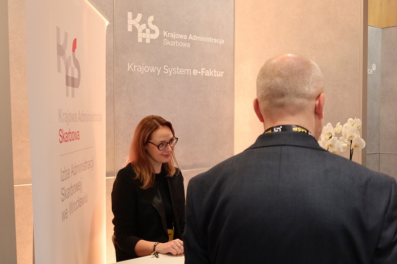 a także bezpośrednio porozmawiać o dostępnych instrumentach finansowych i rozwiązaniach dla firm. Na stoisku informacyjnym dolnośląską Krajową Administrację Skarbową reprezentowały ekspertki z Izby Administracji Skarbowej we Wrocławiu, które udzielały wsparcia przedsiębiorcom w zakresie Krajowego Systemu e-Faktur.