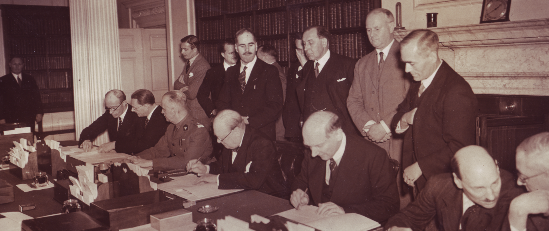 Under these circumstances it was imperative to set the rules of the Anglo-Polish military alliance. On 5 August 1940, the Prime Ministers and Foreign Secretaries of both countries signed an agreement in 10 Downing Street whereby “the Polish Armed Forces shall form the army of the sovereign Republic of Poland”. The Polish military units were to retain the national structure, emblems, ranks and command. For political purposes and to boost morale, the signing of the agreement was accompanied by much pomp and “ceremonial aspects unseen in these situations”, as recounted the memoires of Ambassador Edward Raczyński, who had attended the negotiations. Present to witness the signing ceremony was a large part of Winston Churchill’s cabinet, with Foreign Secretary Lord Halifax and Secretaries for War, Air, Home Office and the Dominions.