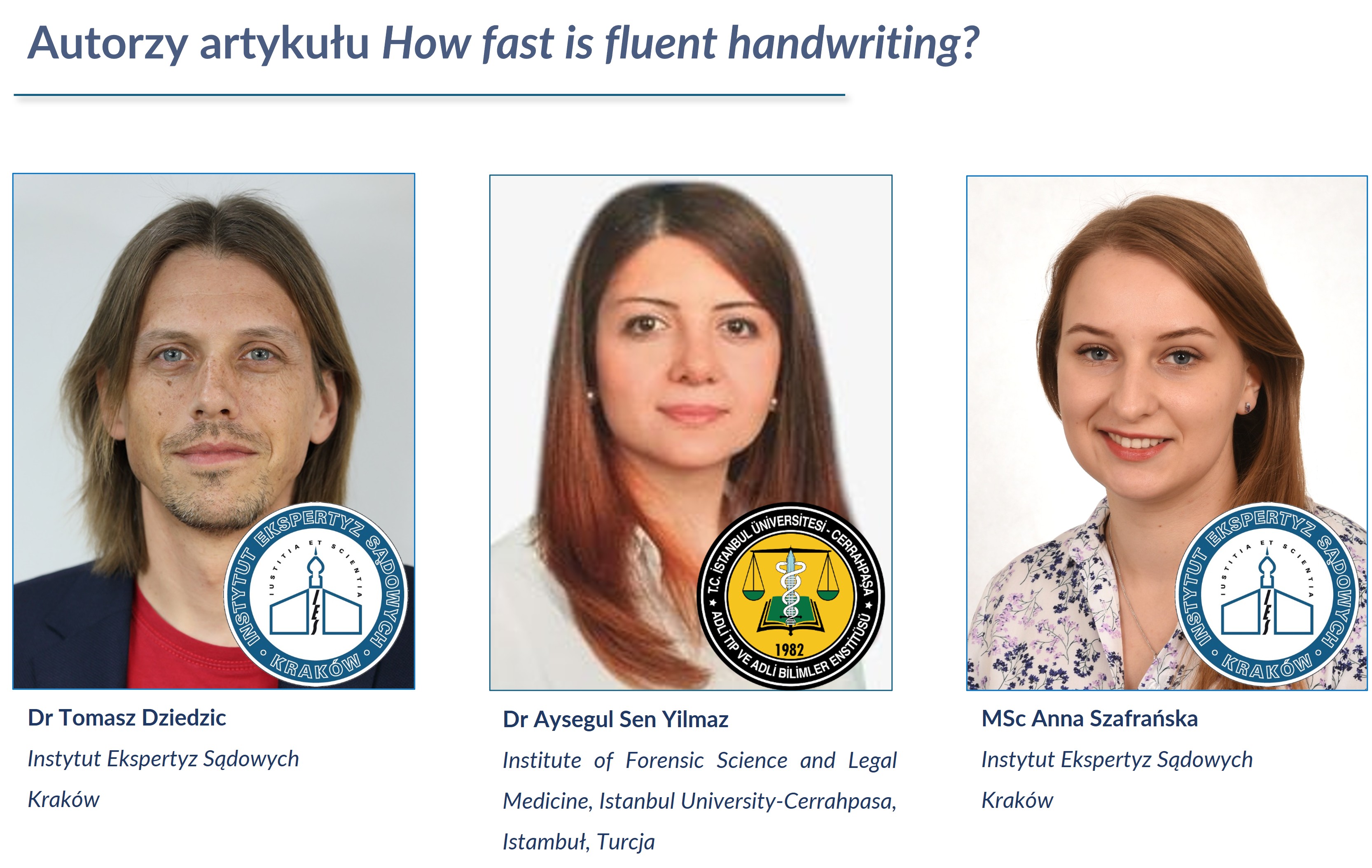 Miło nam poinformować, że na łamach czasopisma „Forensic Science International” ukazał się artykuł, którego współautorami są pracownicy naszego Instytutu: dr Tomasz Dziedzic i mgr Anna Szafrańska z Pracowni Badania Pisma Ręcznego i Dokumentów, a także współpracująca z nimi dr Aysegul Sen Yilmaz z Institute of Forensic Science and Legal Medicine, Istanbul University-Cerrahpasa.
