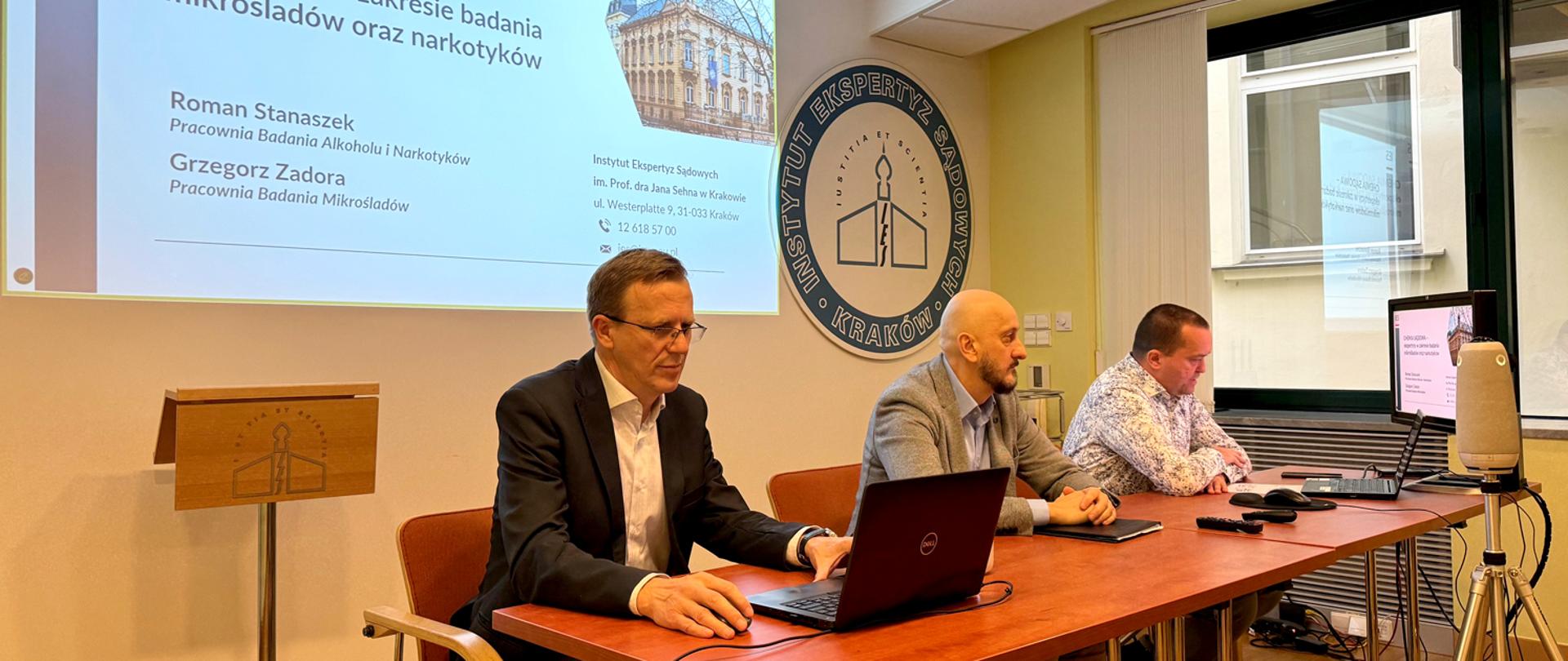 5 listopada odbyło się spotkanie z cyklu „Spotkania z biegłymi", które zostało zorganizowane w trybie hybrydowym. Prelekcję pt. „Chemia sądowa – ekspertyzy w zakresie badania mikrośladów oraz narkotyków” wygłosili przedstawiciele Pracowni Badania Alkoholu i Narkotyków oraz z Pracowni Badania Mikrośladów IES – dr Roman Stanaszek oraz prof. dr hab. Grzegorz Zadora.