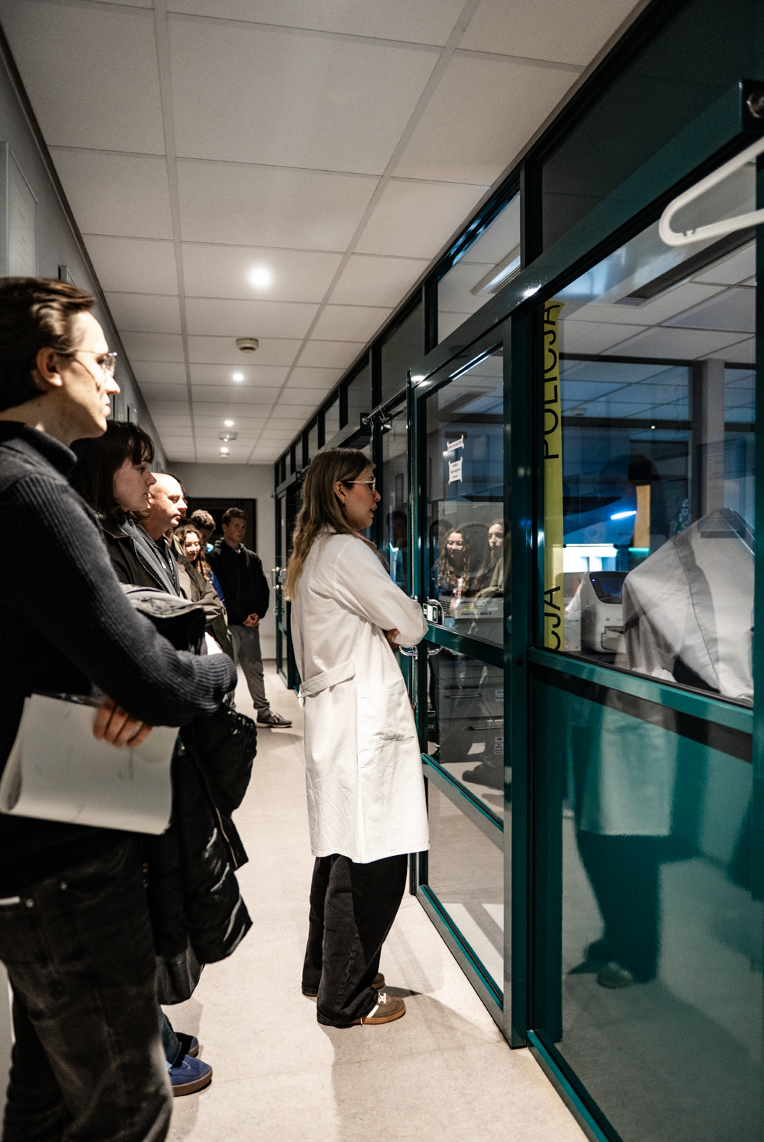 Na bazie tego fikcyjnego scenariusza zwiedzający zapoznali się z rodzajami śladów, jakie znaleźć można na miejscu przestępstwa oraz ze sposobami ich ujawniania, zabezpieczania i późniejszej analizy laboratoryjnej.